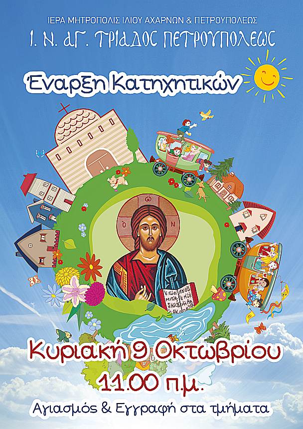 Τον αγιασμό και την έναρξη των κατηχητικών συνάξεων θα πραγματοποιήσει την Κυριακή 9 Οκτωβρίου 2022, στις 11 π.μ., η ενορία της Αγίας Τριάδος Πετρουπόλεως.