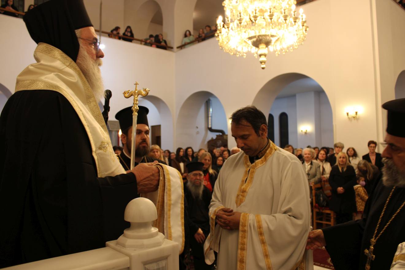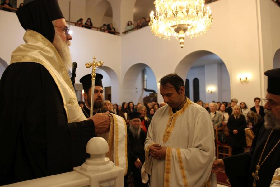 Στη συνέχεια ο Σεβασμιώτατος προεχείρησε σε Υποδιάκονο, τον εκτελούντα χρέη νεωκόρου του Ιερού κ. Δημήτριο Μητρόπουλο, τον οποίο γαλούχησε και ποδηγέτησε στη ιερή διακονία ο συνταξιούχος πρώην Πρόεδρος του Εκκλ. Συμβουλίου π. Γεώργιος Βακάλογλου. Συγκινητική ήταν η συνάντησή του π. Γεώργιου - στην αρχή και στο τέλος της ακολουθίας - με τον Μητροπολίτη, καθώς τους συνδέει βαθειά φιλία και αγάπη.