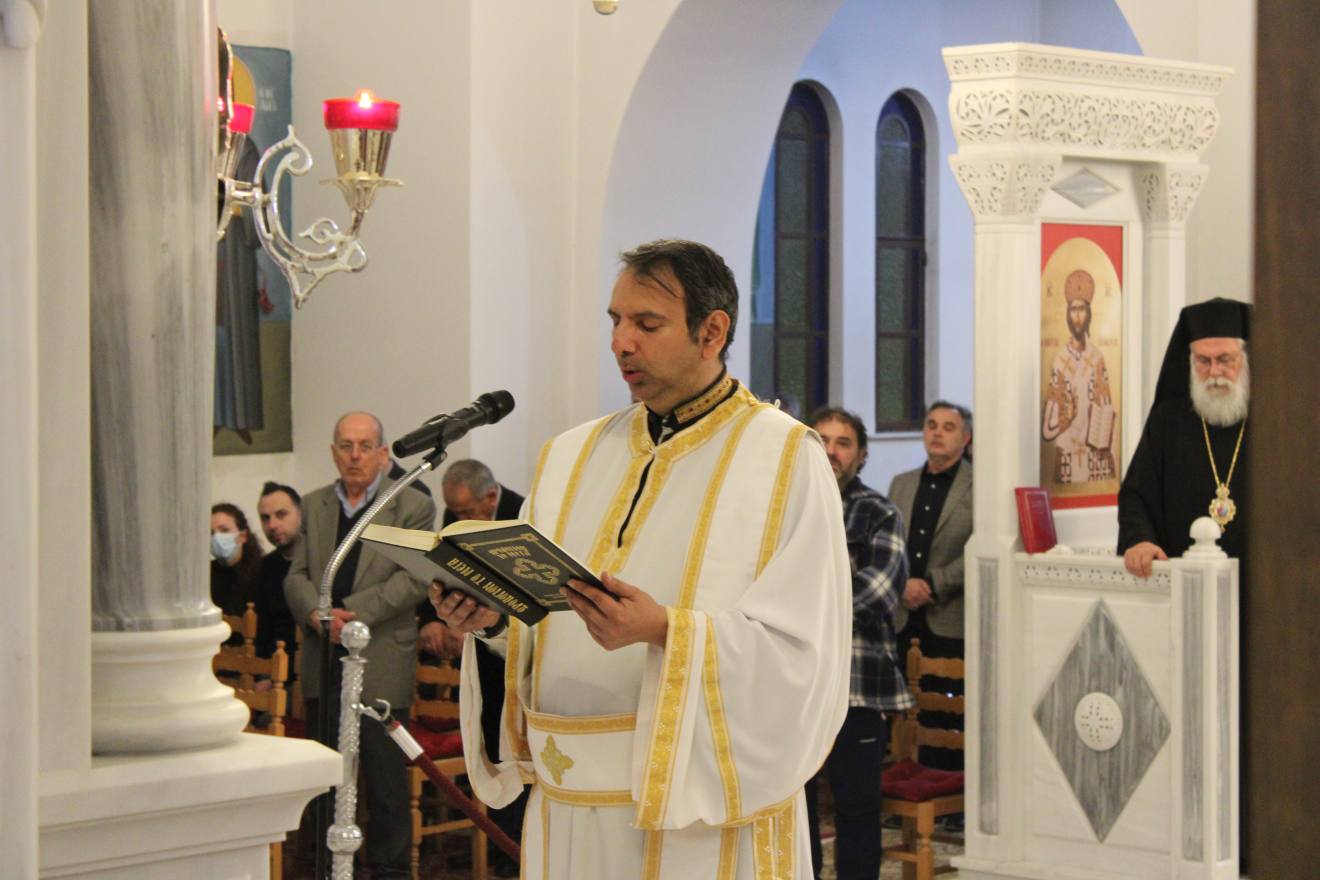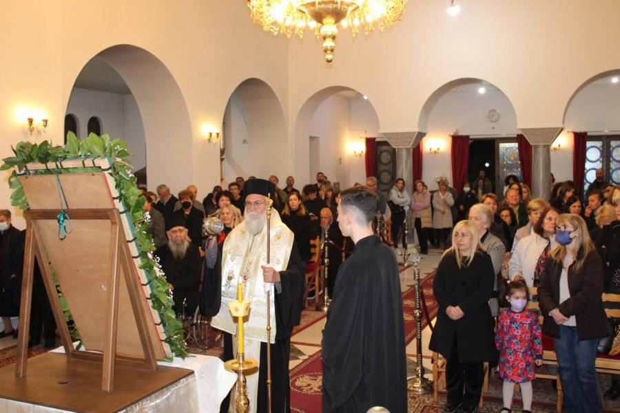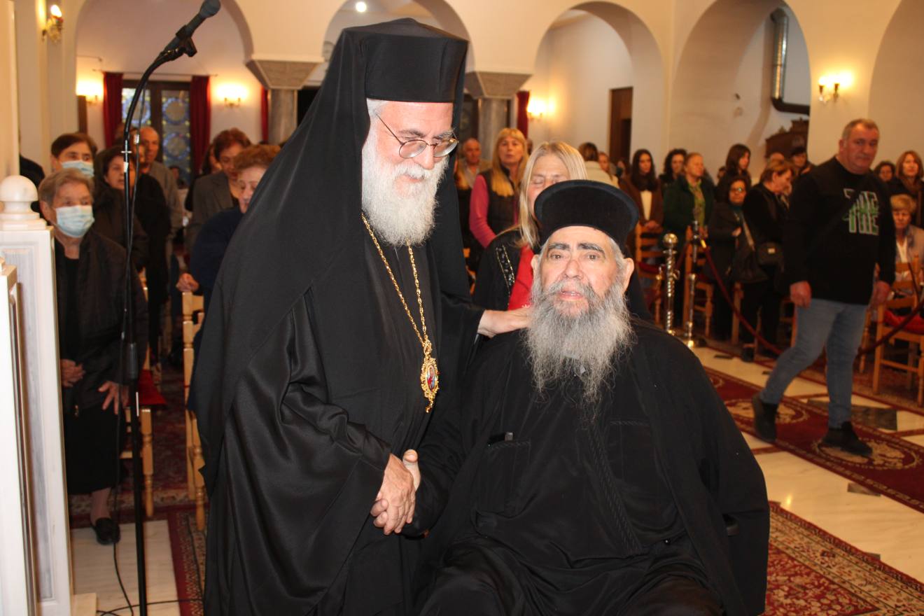 Μετά την ακολουθία προσφέρθηκε από τους ιερείς στο Πνευματικό Κέντρο του Ιερού Ναού μικρό κέρασμα και εκεί συζητήθηκαν διάφορα θέματα που απασχολούν την ποιμαντική της συγκεκριμένης ενορίας και ο Σεβ. είχε την ευκαιρία να συνομιλήσει με τον φίλο του π. Γεώργιο και να θυμηθούν παλιές καλές ημέρες.