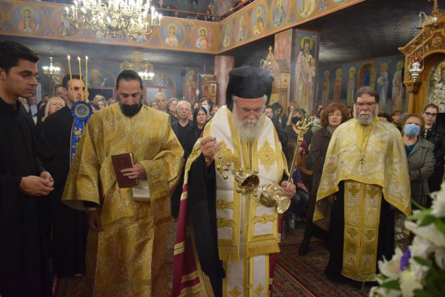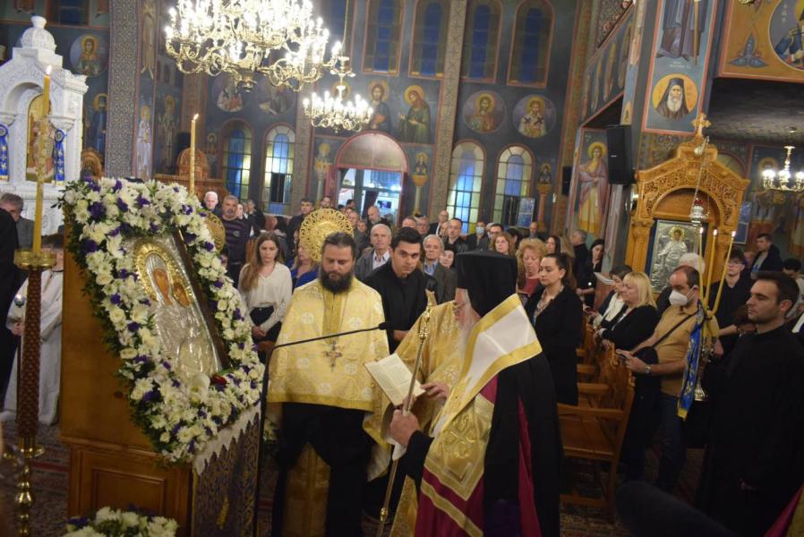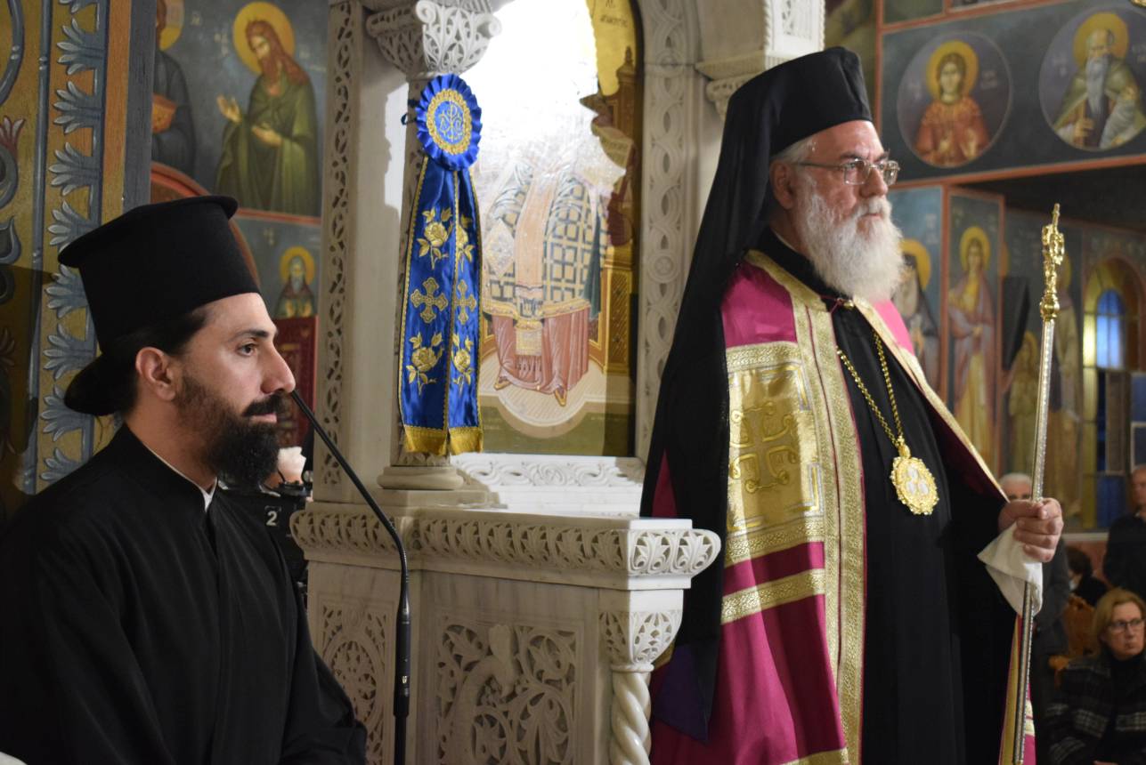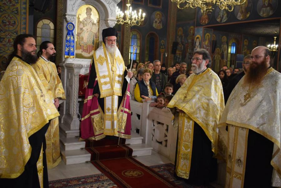 Πριν το τέλος της ακολουθίας ο Σεβασμιώτατος μίλησε με αφορμή το ακροτελεύτειο τροπάριο της γ’ ωδής:«Χαῖρε Πύλη μόνη, ἣν ὁ Λόγος, διώδευσε μόνος, ἡ μοχλούς, καὶ πύλας ᾍδου Δέσποινα, τῷ τόκῳ σου συντρίψασα· χαῖρε ἡ θεία εἴσοδος, τῶν σῳζομένων Πανύμνητε», για την απόφαση της Παναγίας να συγκατατεθεί στην πρόταση την οποία εκόμισε από τον Θεό ο Αρχάγγελος Γαβριήλ και να δεχθεί να σαρκωθαί μέσα της ο Λόγος του Θεού, με αποτέλεσμα την δυνατότητα της δικιάς μας σωτηρίας και αθανασίας, που μας προσφέρθηκε από τον Χριστό. Η Παναγία μας παραμένει έκτοτε η είσοδος προς την Βασίλεια του Θεού για κάθε πιστό.