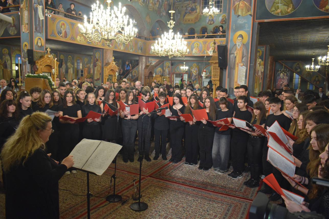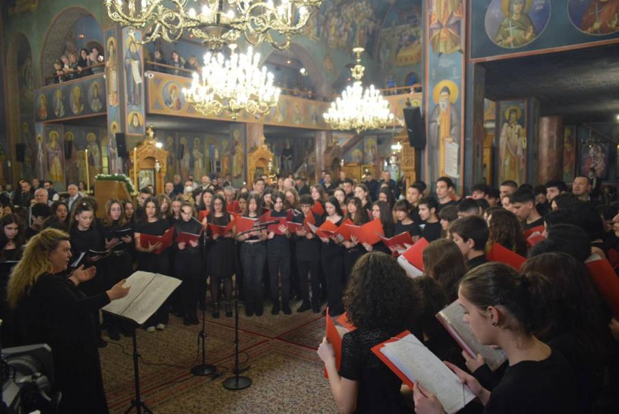 Τον κανόνα των Χαιρετισμών έψαλε χορωδία από 70 μαθητές του Μουσικού Σχολείου Ιλίου, ενώ η όλη ακολουθία μεταδόθηκε από την ΕΡΤ.