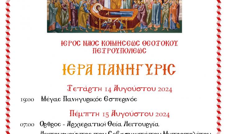 Δείτε φωτογραφίες από τον πανηγυρικό Εσπερινό της Αγίας Γλυκερίας που τελέστηκε στο παρεκκλήσιο της Αγίας που βρίσκεται στην Πετρούπολη. Χοροστάτησε ο Σεβασμιώτατος Μητροπολίτης Ιλίου, Αχαρνών και Πετρουπόλεως κ. Αθηναγόρας.