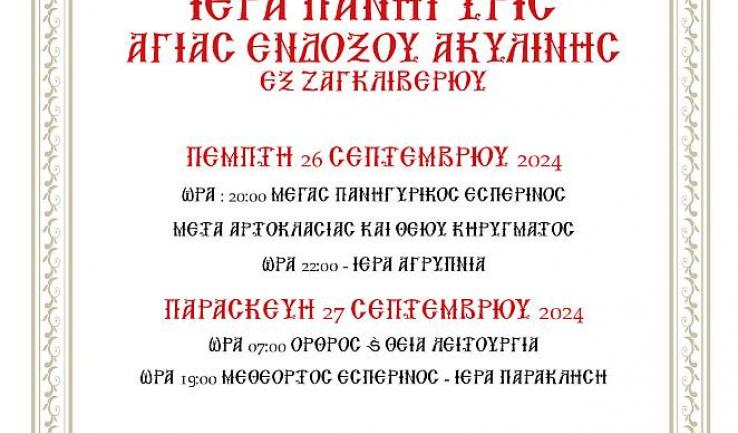 Πανήγυρις Αγίας Ακυλίνας εκ Ζαγκλιβερίου στην Ι.Μ. Αγ. Παντελεήμονος