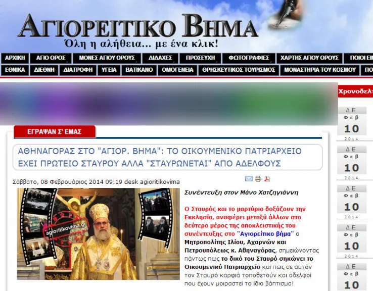 Αποκλειστική συνέντευξη στη διάσημη ιστοσελίδα εκκλησιαστικού περιεχομένου «Αγιορείτικο Βήμα» έδωσε ο Μητροπολίτης Ιλίου κ. Αθηναγόρας.