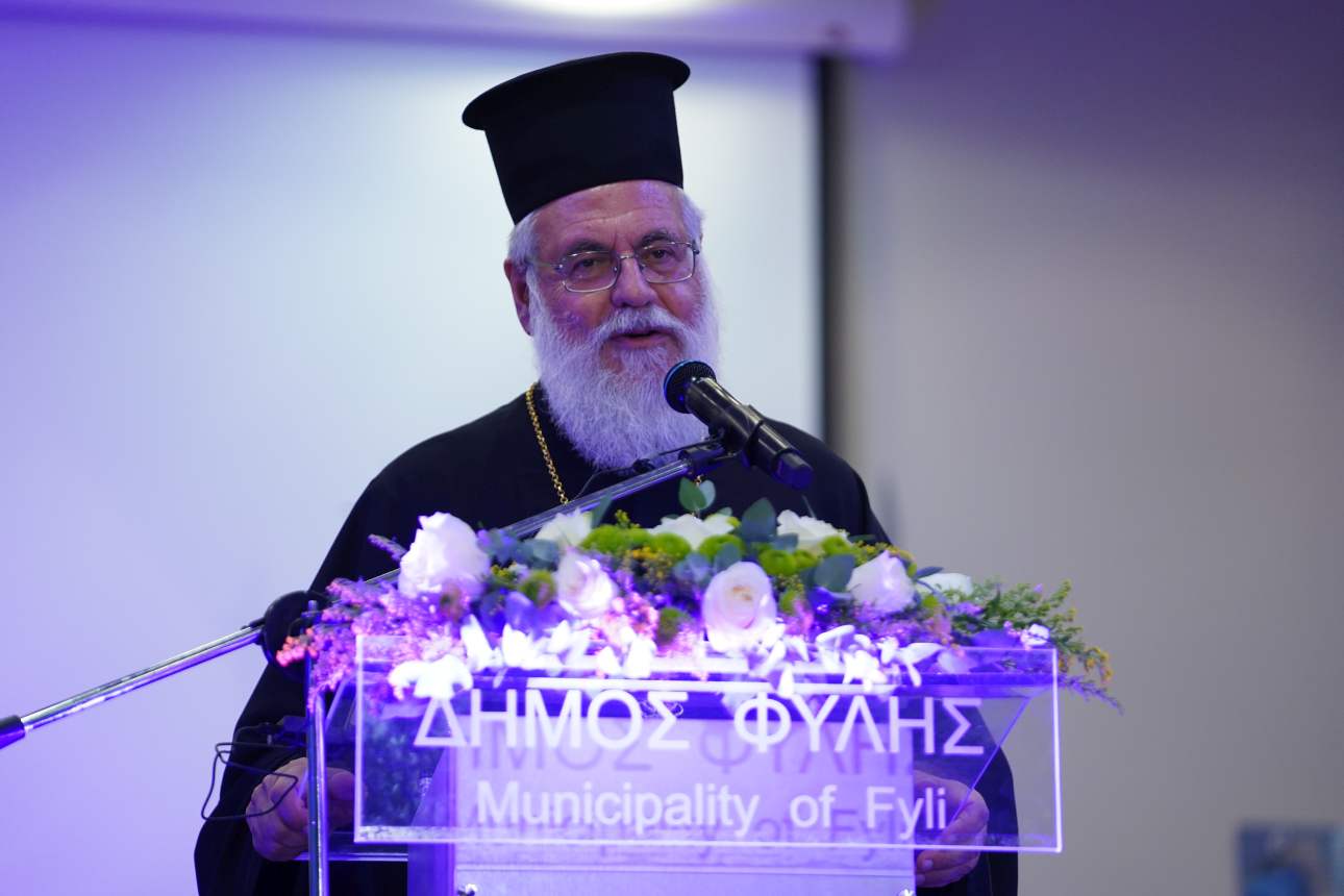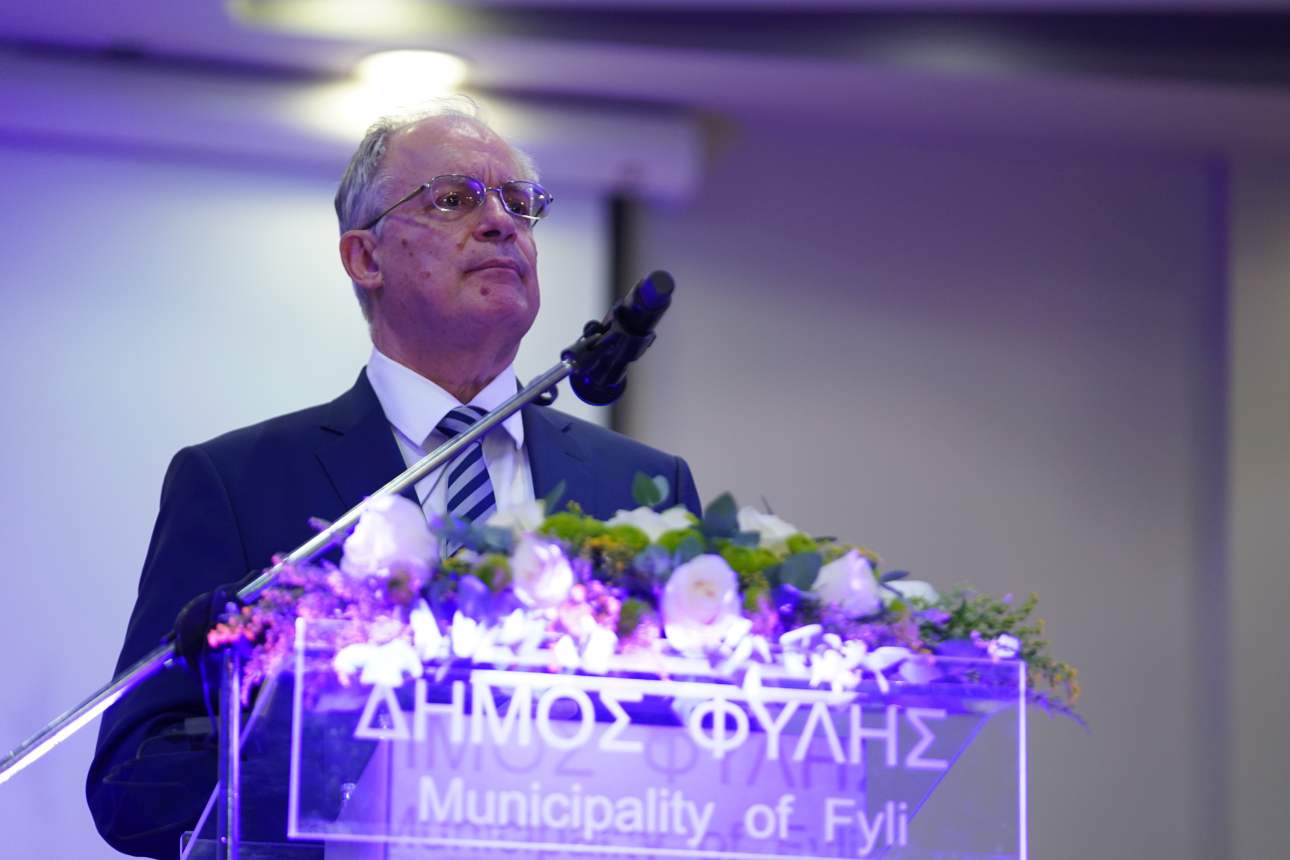 Στο πρώτο μέρος της εκδήλωσης, πέραν των ομιλιών, ο Σεβασμιώτατος Μητροπολίτης μας και ο Δήμαρχος Φυλής απένειμαν στο Πρόεδρο της Βουλής των Ελλήνων πλακέτα, τιμώντας με τον τρόπο αυτό την μεγάλη συνεισφορά του στην δημοκρατία, τον κοινοβουλευτισμό και την καθοριστική συμβολή του στη διατήρηση και εμπέδωση της συλλογικής ιστορικής μνήμης, θέλοντας έτσι να δώσουν έμφαση στην τιτάνια προσπάθεια της ελληνικής Πολιτείας στον αγώνα για την αποκατάσταση και την κοινωνική ένταξη των Ελλήνων προσφύγων του 1922.