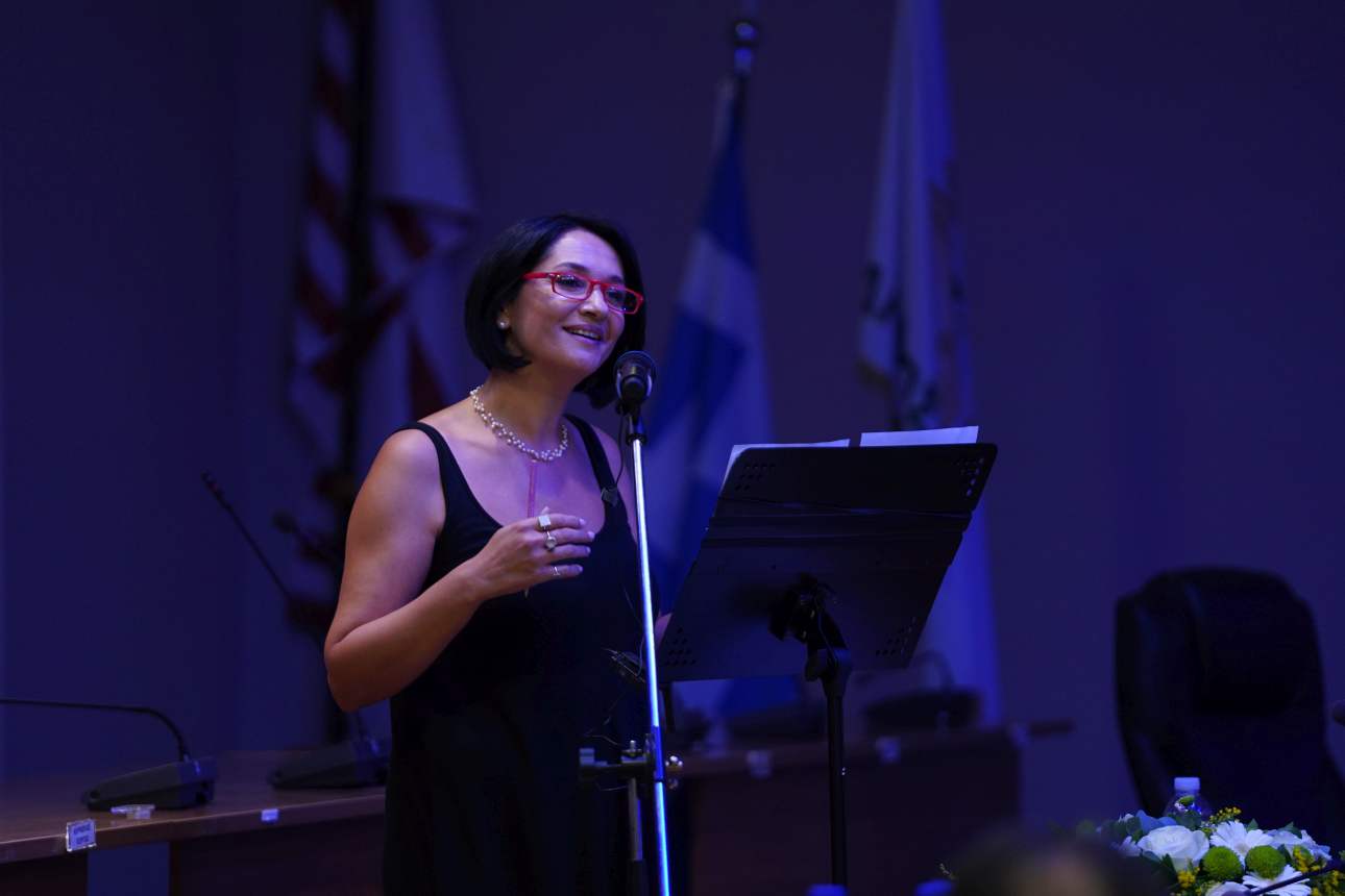 Στο δεύτερο μέρος της εκδήλωσης πραγματοποιήθηκε συναυλία του μουσικοσυνθέτη κ. Μάριου Στρόφαλη και της ερμηνεύτριας κας Ειρήνης Τουμπάκη, με τίτλο: «Yunan taxim διαδρομές». Ένα αφιέρωμα στο πολύγλωσσο μουσικό μωσαϊκό του κοσμοπολίτικου λιμανιού της Μεσογείου ως την καταστροφή της το 1922, αλλά και στο ταξίδι της πλούσιας μουσικής του κουλτούρας τα επόμενα χρόνια στην Ελλάδα, την Ευρώπη και την Αμερική. Αποσπάσματα λογοτεχνικών κειμένων διάβασε η ηθοποιός κα Κατερίνα Παπαδάκη.