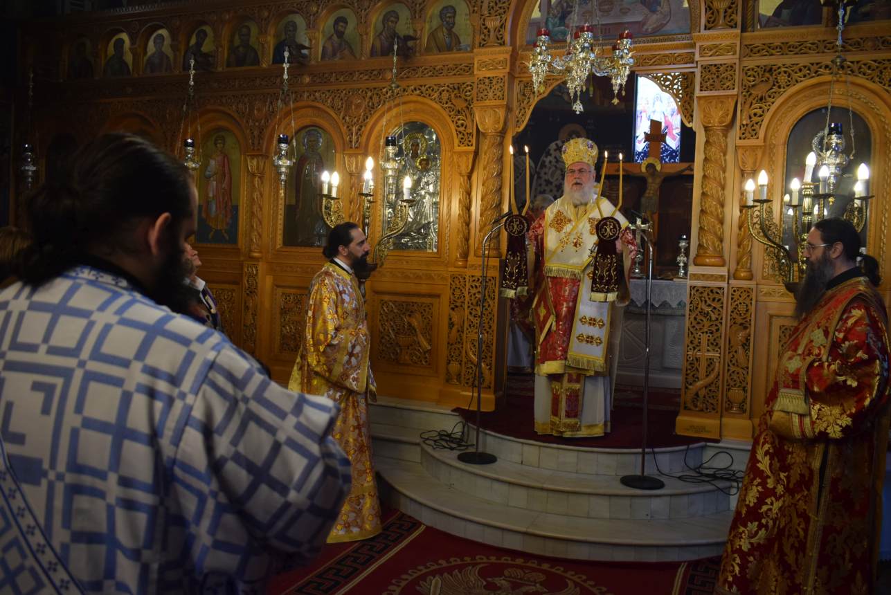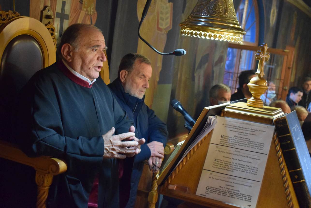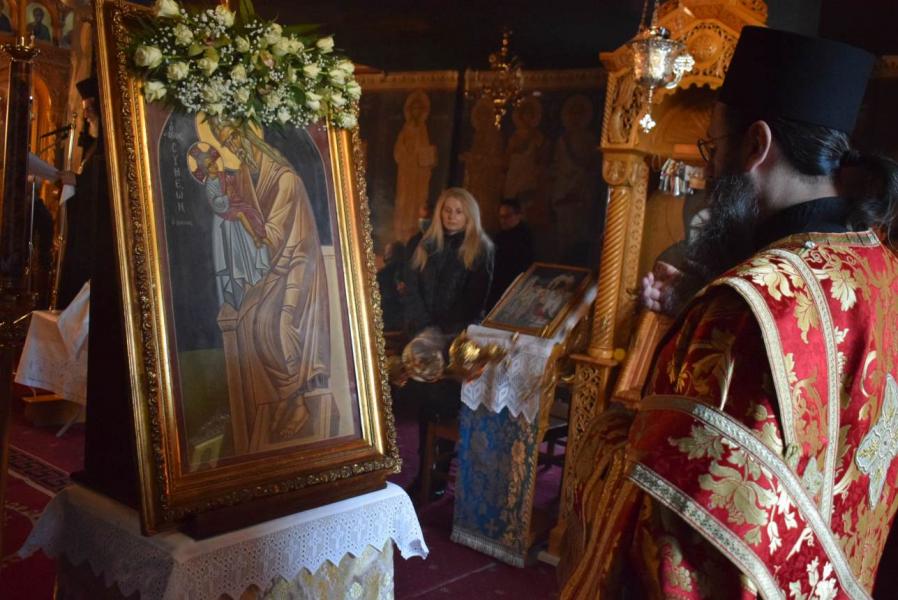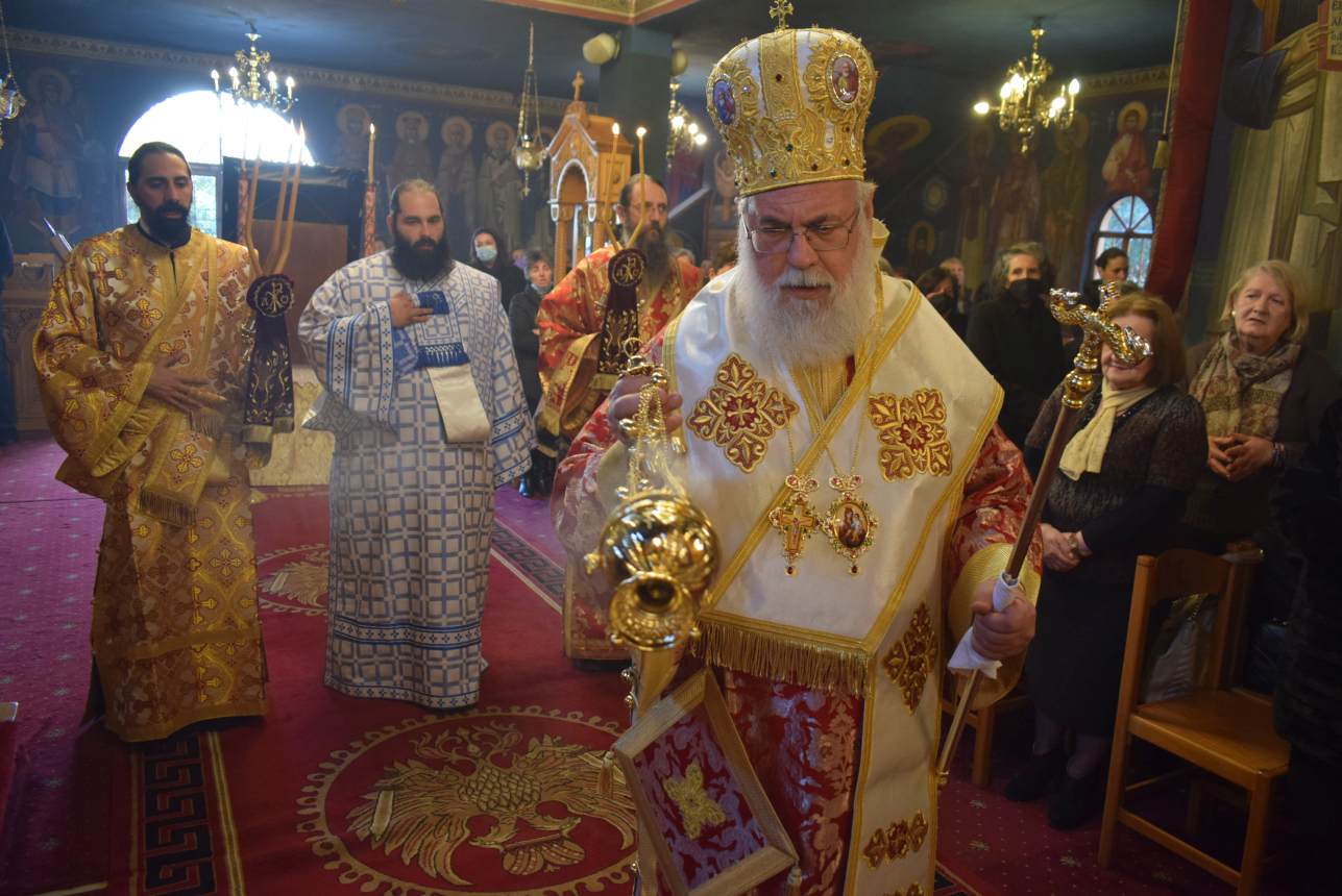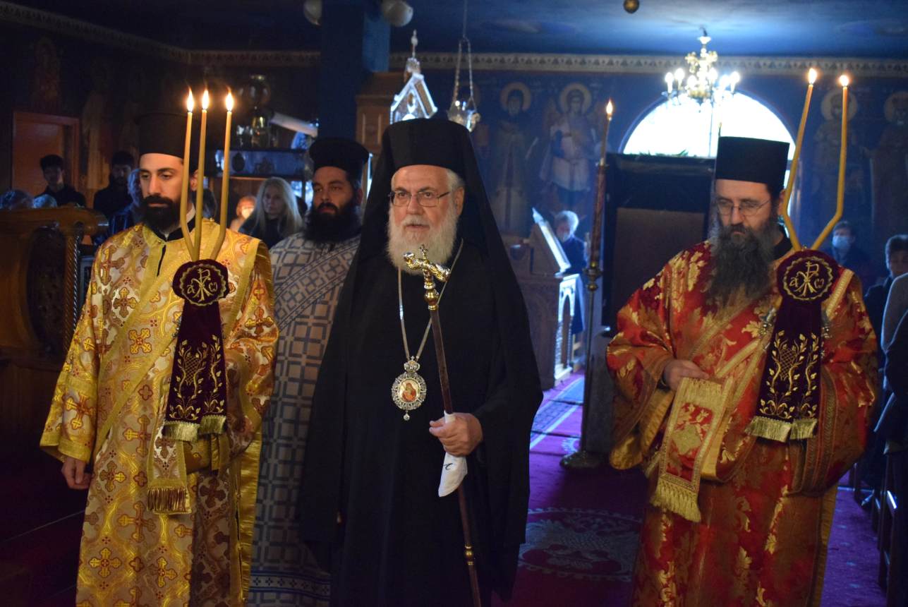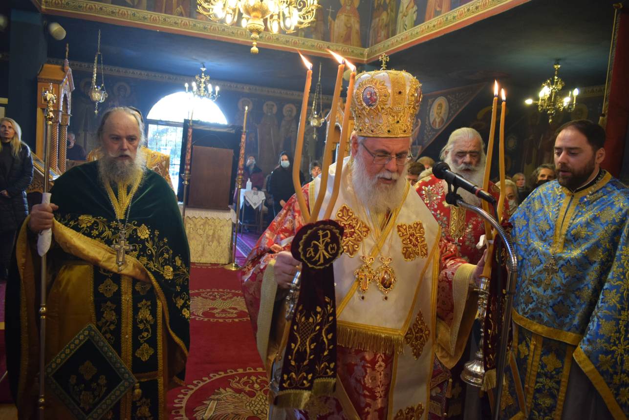 Πριν την οπισθάμβωνο ευχή ο Σεβασμιώτατος λαμβάνοντας αφορμή από το α’ τροπάριο των εσπερίων: «Λέγε Συμεών, τίνα φέρων ἐν ἀγκάλαις, ἐν τῷ ναῷ ἀγάλλῃ;», μίλησε για το θαυμαστό γεγονός της αγκαλοφορίας του Θεανθρώπου ως βρέφους από τον πρεσβύτη Συμεών και πως οι χριστιανοί μπορούν να συναντήσουν τον Χριστό στα μυστήρια της Εκκλησίας μας και ιδιαίτερα στη Θεία Κοινωνία, όπου όχι μόνο βλέπουμε αλλά και γευόμαστε τον ενανθρωπήσαντα Θεόν.