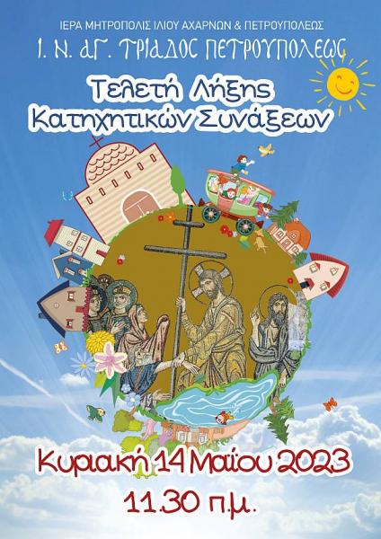 Την Κυριακή 14 Μαΐου 2023, στις 11:30, θα πραγματοποιηθεί η εορτή λήξης των κατηχητικών συνάξεων της ενορίας της Αγίας Τριάδας Πετρουπόλεως.