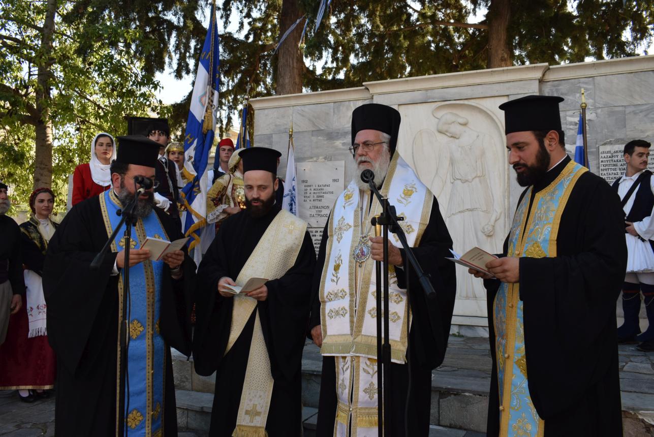 Επηκολούθησε επιμνημόσυνη δέηση και κατάθεση στεφάνων στο μνημείο των πεσόντων.