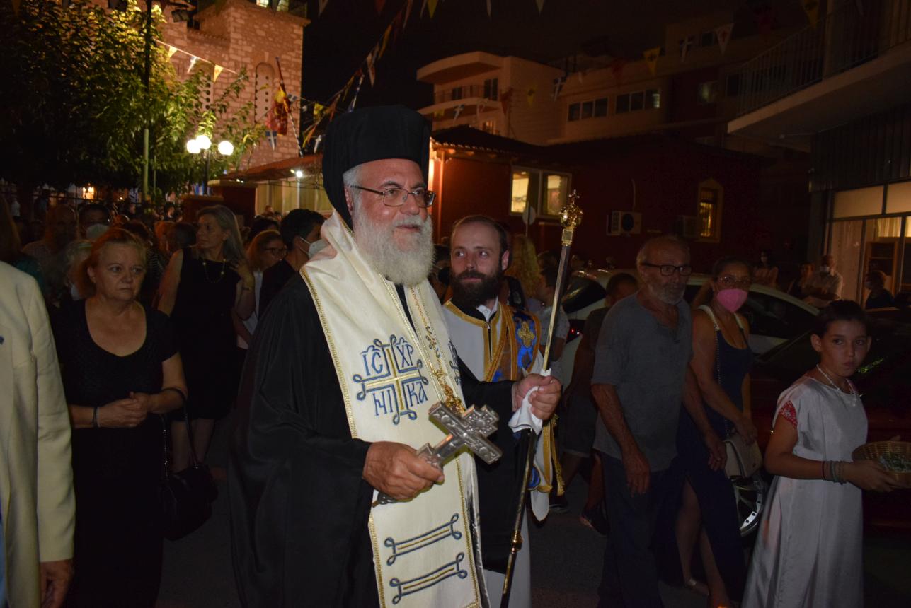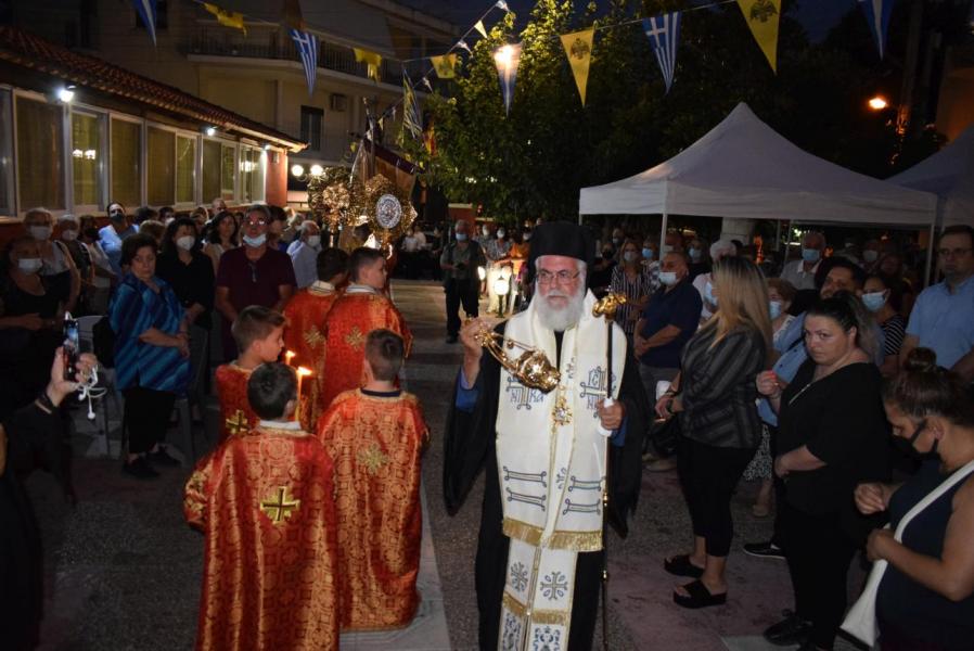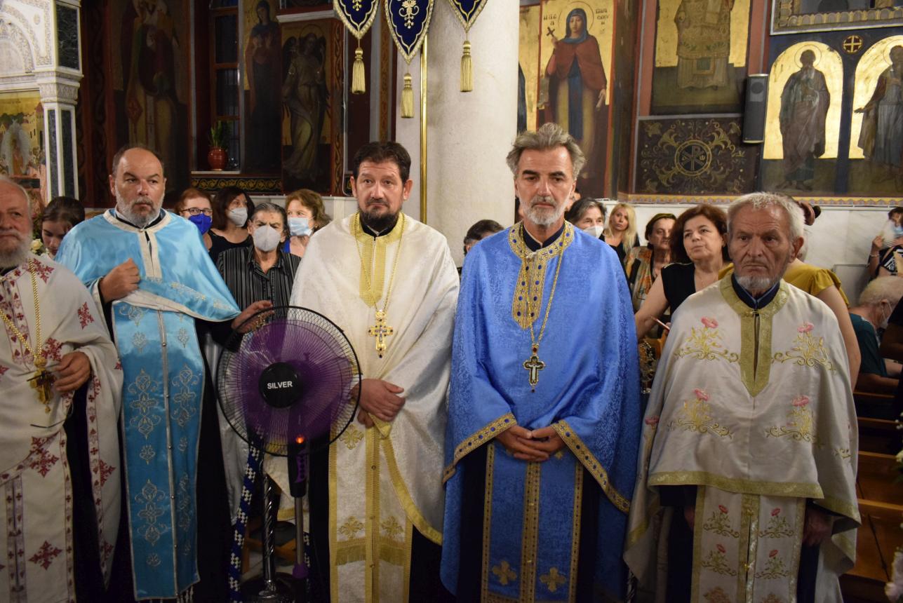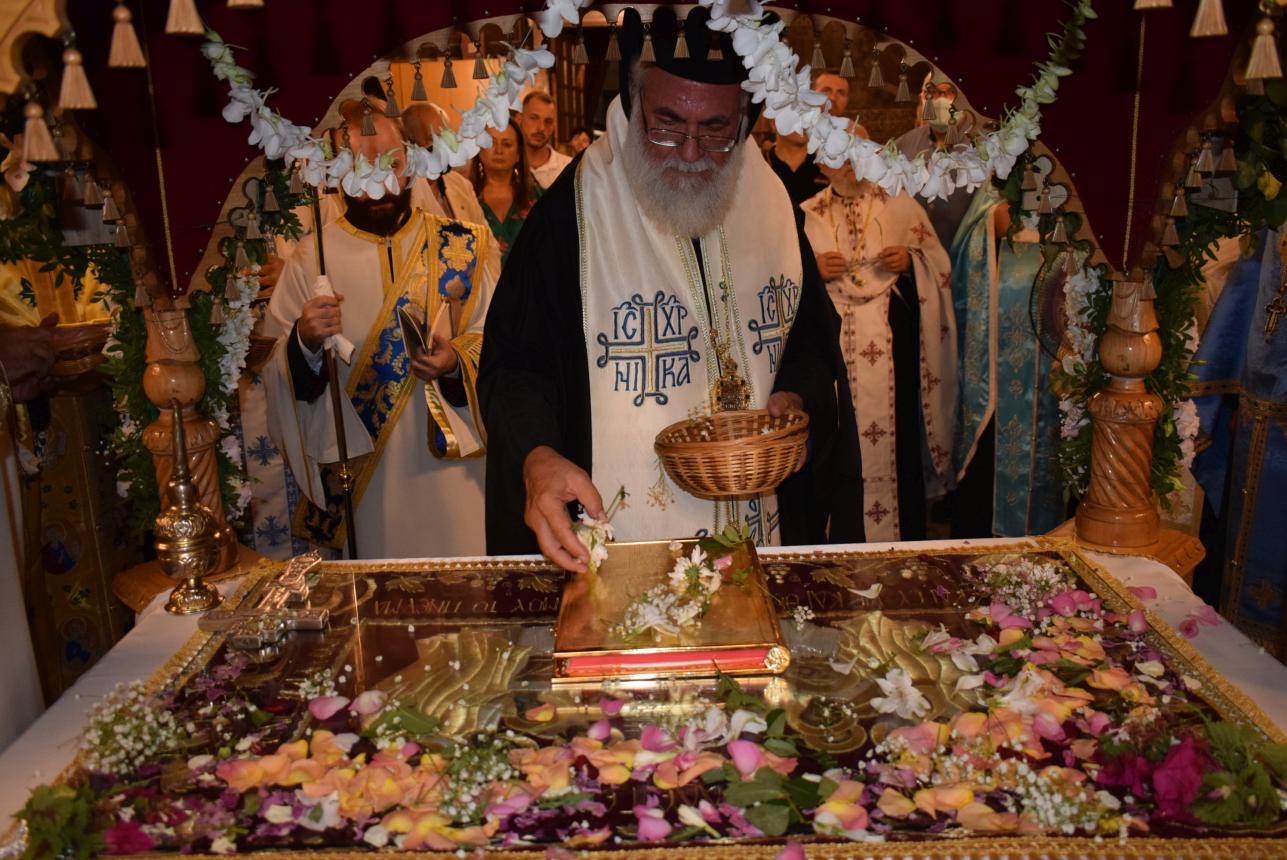 Στο τέλος της ακολουθίας του Εσπερινού επισυνάφθηκαν τα Εγκώμια στην Υπεραγία Θεοτόκο και η λιτάνευση του Επιταφίου της. Ο πρόεδρος του Εκκλησιαστικού Συμβουλίου και Αρχιερατικός Επίτροπος Αχαρνών Αρχιμ. Ιωάννης Ράπτης, απηύθυνε ευχαριστήριους λόγους προς τους παρευρισκομένους πιστούς και όσους κοπίασαν για την πραγματοποίηση της πανηγύρεως.
