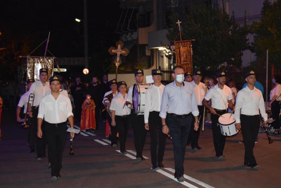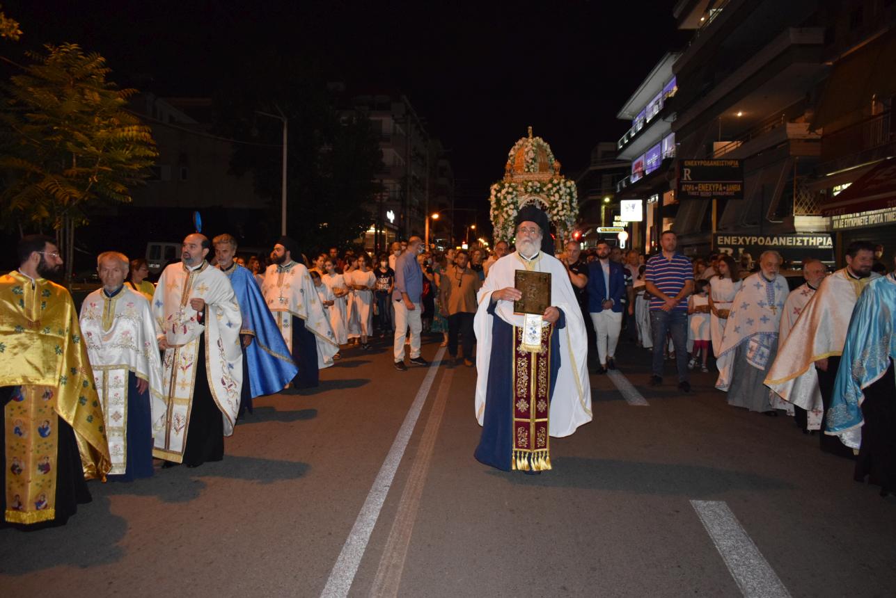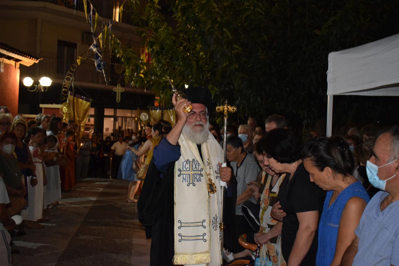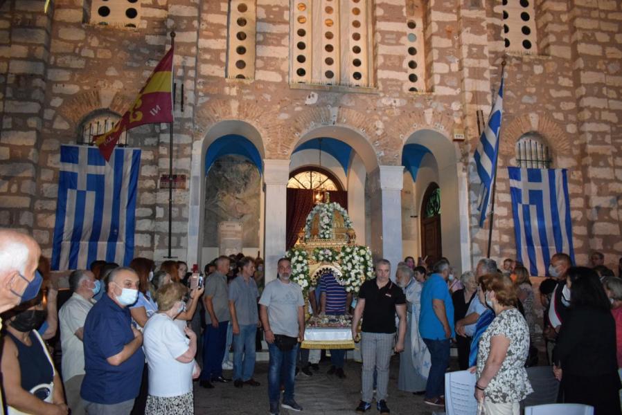 Στο τέλος της ακολουθίας του Εσπερινού επισυνάφθηκαν τα Εγκώμια στην Υπεραγία Θεοτόκο και η λιτάνευση του Επιταφίου της. Ο πρόεδρος του Εκκλησιαστικού Συμβουλίου και Αρχιερατικός Επίτροπος Αχαρνών Αρχιμ. Ιωάννης Ράπτης, απηύθυνε ευχαριστήριους λόγους προς τους παρευρισκομένους πιστούς και όσους κοπίασαν για την πραγματοποίηση της πανηγύρεως.