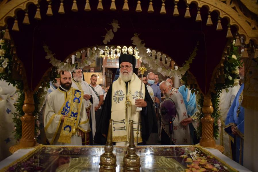 Στον Ι.Ν. Κοιμήσεως Θεοτόκου Αχαρνών χοροστάτησε ο Σεβασμιώτατος Μητροπολίτης Ιλίου, Αχαρνών και Πετρουπόλεως κ. Αθηναγόρας, κατά τον πανηγυρικό Εσπερινό της μεγάλης Θεομητορικής εορτής, στις 14 Αυγούστου 2022.