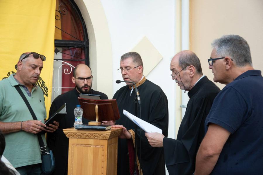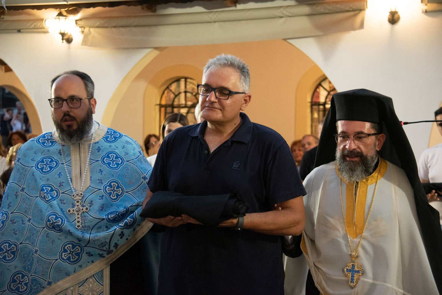 Στον Πανηγυρικό Εσπερινό χοροστάτησε ο Σεβασμιώτατος Μητροπολίτης Ιλίου, Αχαρνών και Πετρουπόλεως κ. Αθηναγόρας συμπαραστατούμενος από τον Γενικό Αρχιερατικό Επίτροπο της Μητροπόλεως Αρχιμ. Ιωάννη Ράπτη, τον Αρχιερατικό Επίτροπο Πετρουπόλεως Αρχιμ Εφραίμ Χριστοφοράκη, τον Αρχιερατικό Επίτροπο Φυλής και Αχαρνών Αρχιμ. Τίτο Χρήστου, τον πρόεδρο του Εκκλ. Συμβουλίου του Ιερού Ναού Πρωτ. Κωνσταντίνο Κασσό και πλειάδα ιερέων της Μητροπολεως Ιλίου.