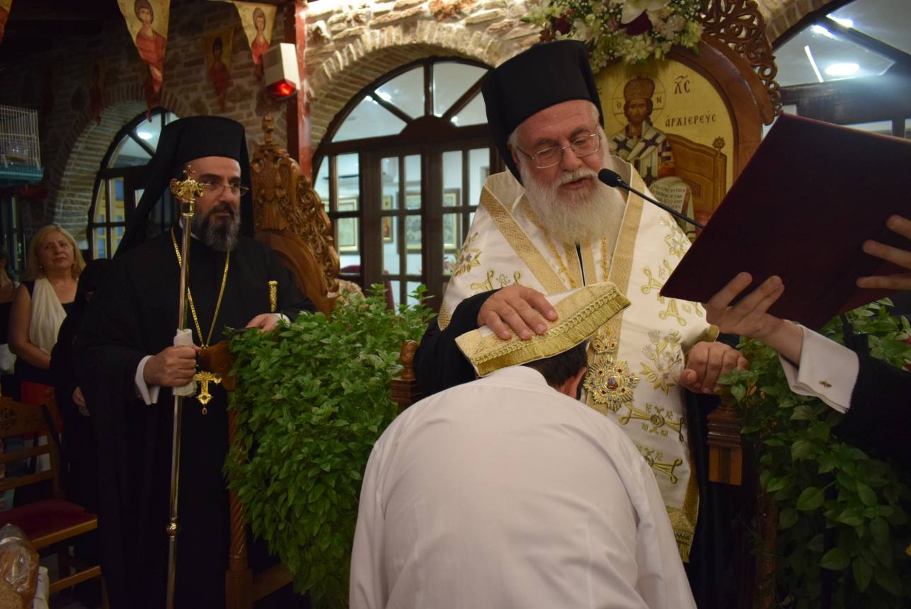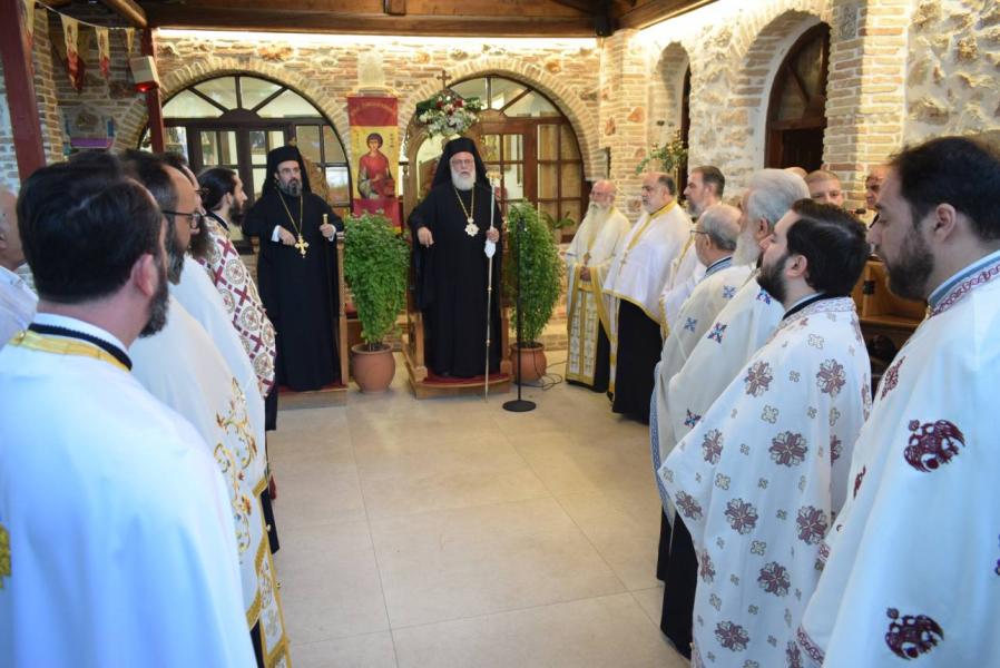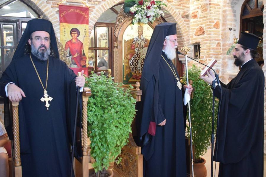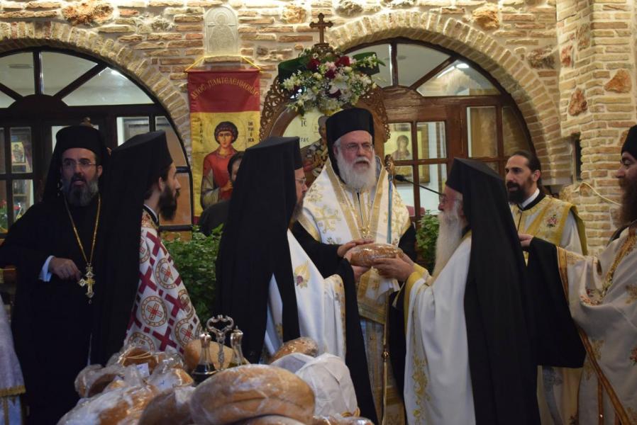 Μετά την ακολουθία της Αρτοκλασίας ο Σεβασμιώτατος ομίλησε επιλέγοντας τον στίχο από τα αναγνώσματα του Εσπερινού «γίνεσθέ μοι μάρτυρες, καὶ ἐγὼ μάρτυς, λέγει Κύριος ὁ Θεός, καὶ ὁ παῖς μου, ὃν ἐξελεξάμην, ἵνα γνῶτε καὶ πιστεύσητε καὶ συνῆτε ὅτι ἐγώ εἰμι». Αναφέρθηκε στον κατ'εξοχήν αγγελιοφόρο του μηνύματος του Θεού στους ανθρώπους, τον ενανθρωπήσαντα Υιό και Λόγο του Θεού («ὁ παῖς μου») και πως δι' αυτού η σχέση υιότητας μεταφέρθηκε δια του Ιησού στους πιστούς της Εκκλησίας, για να μαρτυρούν για τον Θεό και τις εντολές Του. Ένας από αυτούς υπήρξε και ο Άγιος Παντελεήμων, γνήσιο τέκνο του Θεού, εξαγγελεύς του σωτηρίου λόγου που καλεί τους ανθρώπους σε επανασύνδεσή τους με την πηγή της ζωής τους, τον Θεό.