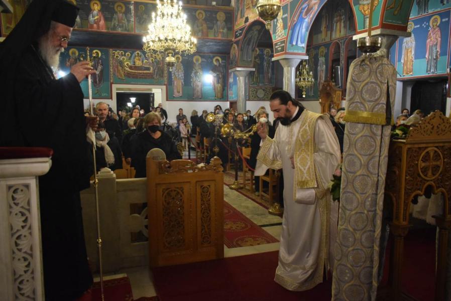 Μέτα την ανάγνωση του ευαγγελικού αναγνώσματος στο τέλος της ακολουθίας, ο Σεβασμιώτατος ομίλησε ερμηνεύοντας τον στίχο:«Ἐγώ εἰμι ἡ ἄμπελος, ὑμεῖς τὰ κλήματα», όπου ο Χριστός είναι ο κορμός της αμπέλου, ο οποίος με τους χυμούς Του (το Σώμα και το αίμα Του) τρέφει τους πιστούς, που αν θέλουν να έχουν όντως ζωή θα πρέπει με τον ασκητικό αγώνα τους να μείνουν συνδεδεμένοι με τον Χριστό. Σε αυτόν τον αγώνα μάς καλεί η φετινή Σαρακοστή, που για άλλη μια φορά μέσα στο λειτουργικό έτος, αλλά και στη ζωή μας, χαρίζει ο Θεός στον καθένα από εμάς.