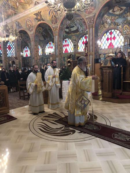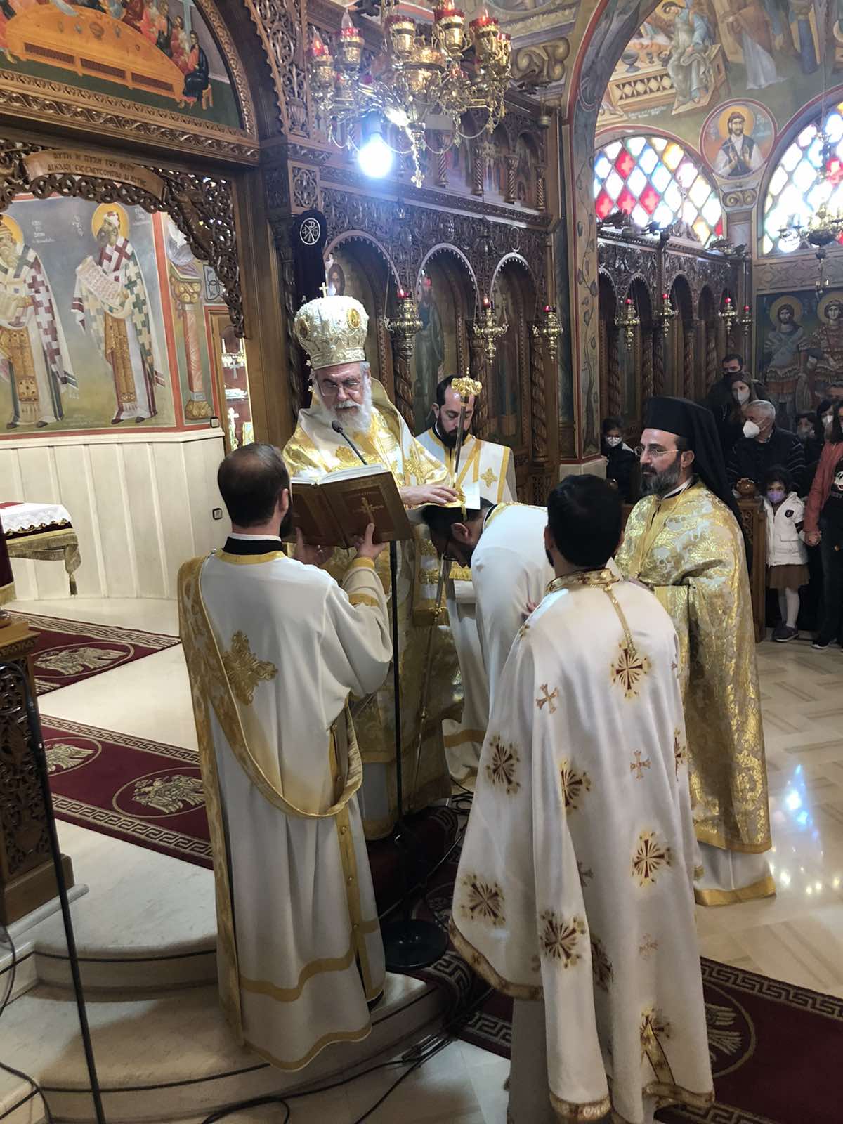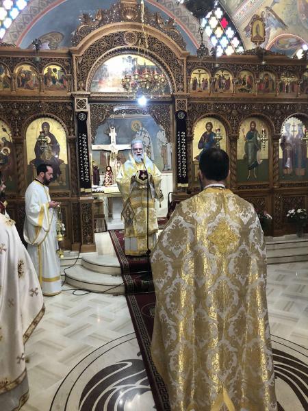 Συλλειτουργοί του υπήρξαν οι εφημέριοι του Ιερού Ναού και πλήθος ενοριτών, στους οποίους ο κ. Αθηναγόρας απηύθυνε εμπνευσμένο λόγο.
