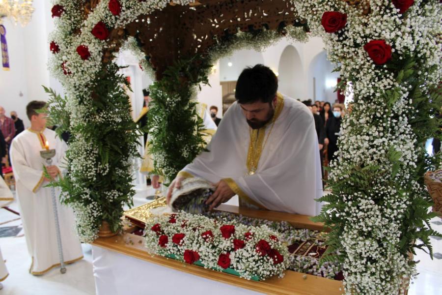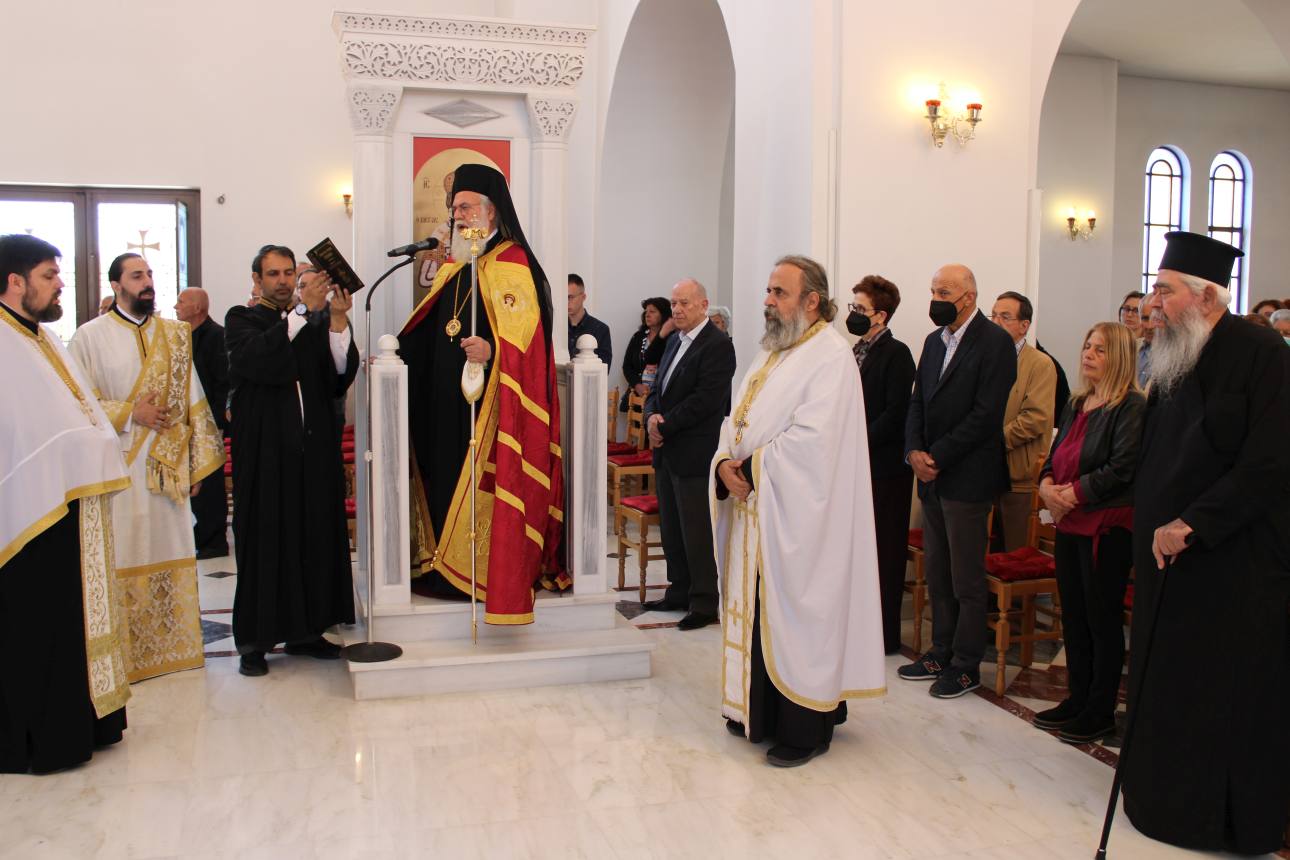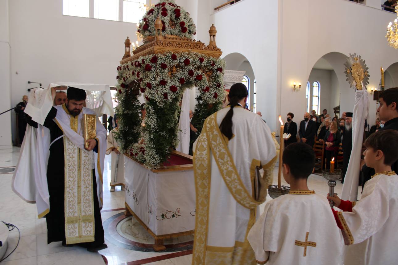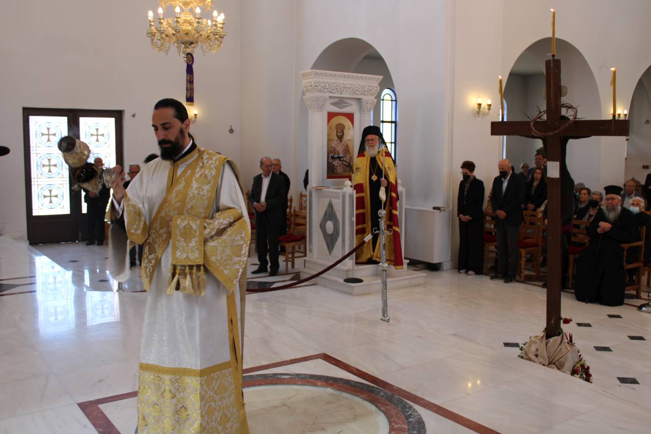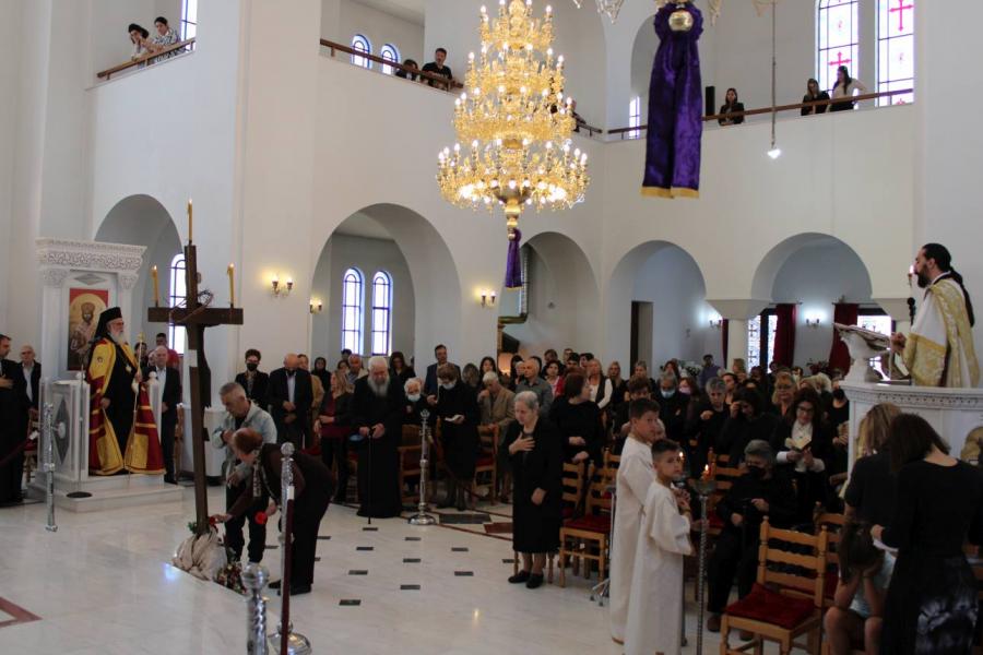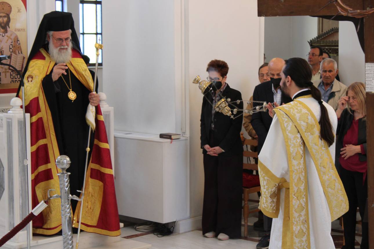 Στην ακολουθία παρευρέθη και ο π. Γεώργιος Βακάλογλου, καταξιωμένος συνταξιούχος ιερέας του Ιερού Ναού. Στους παρευρισκόμενους πιστούς, ο Σεβασμιώτατος μετά το τέλος της ακολουθίας ευχήθηκε ευλογημένη πορεία προς το γεγονός της Ανάστασης.