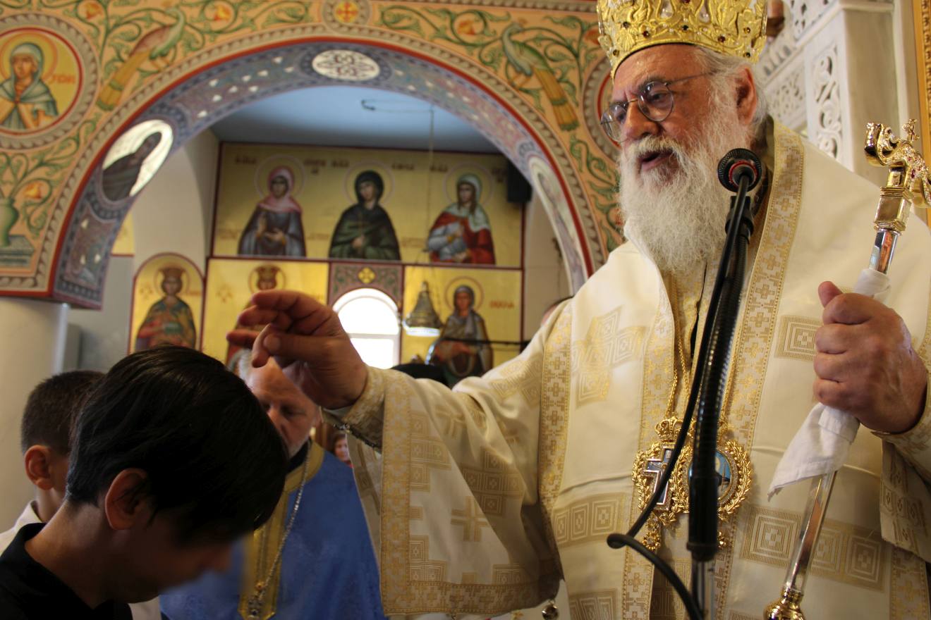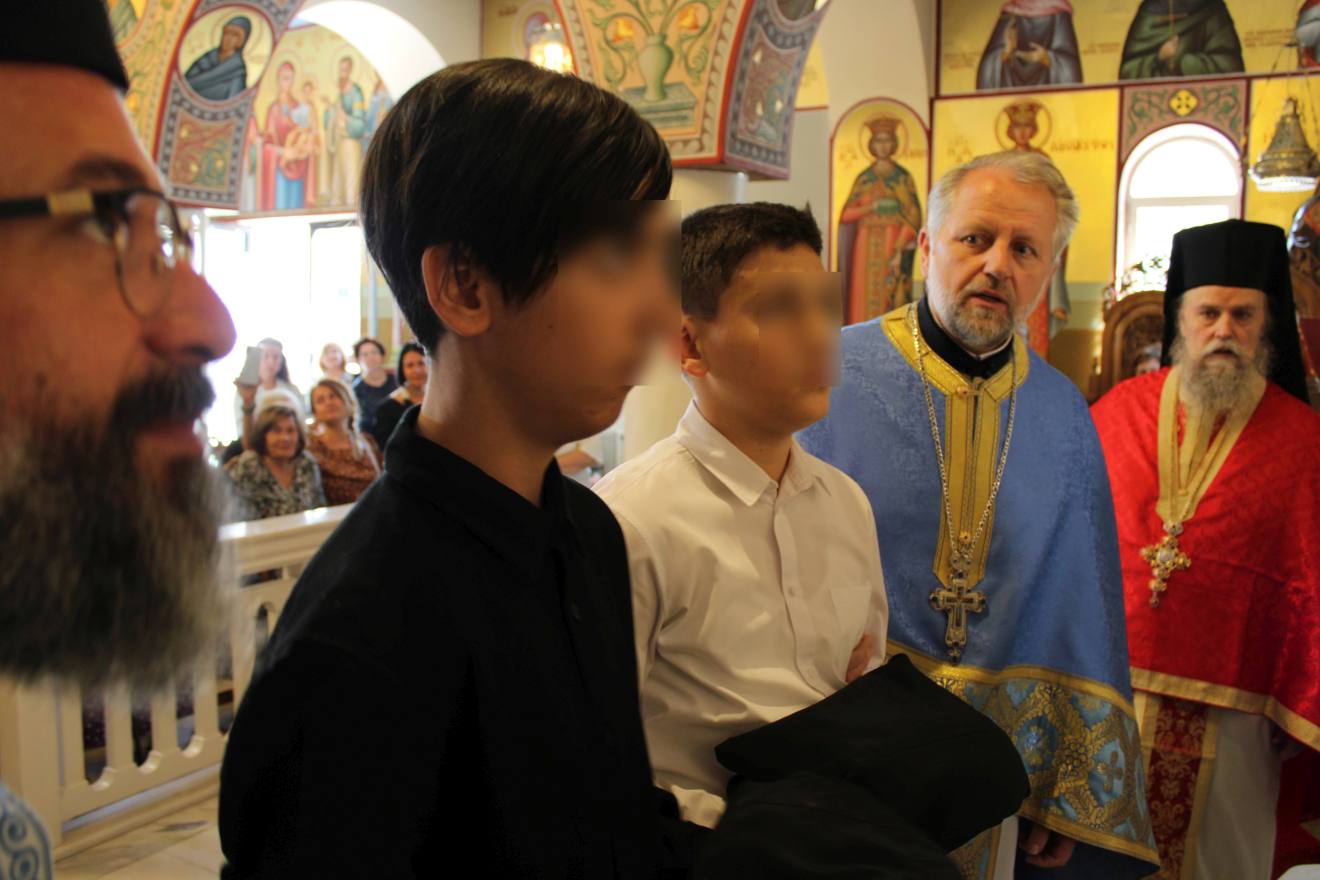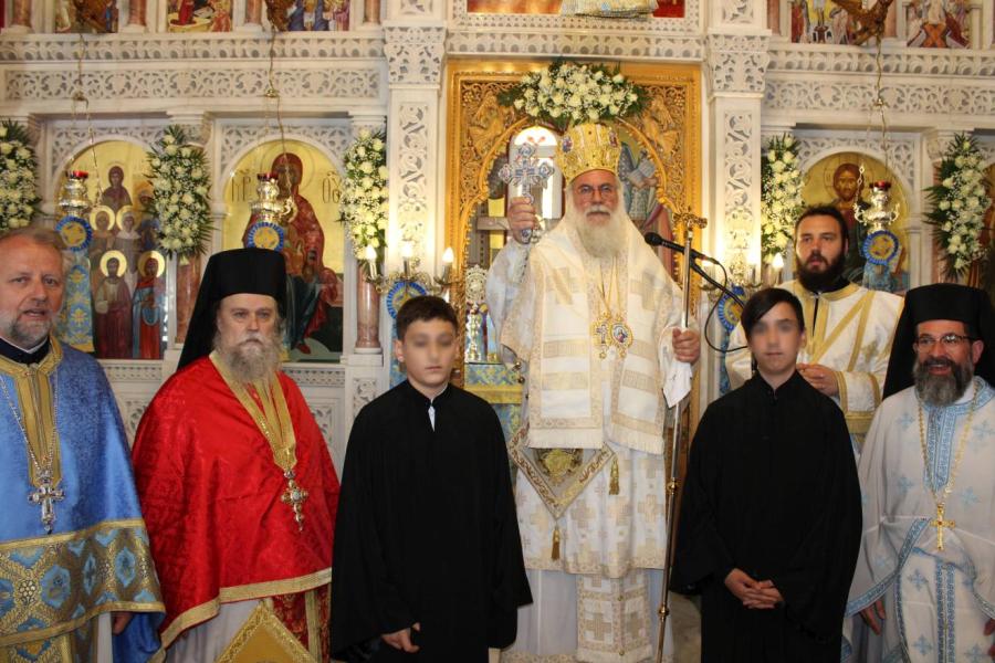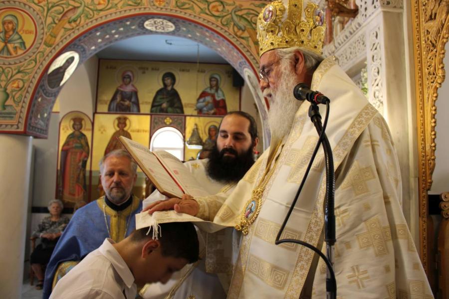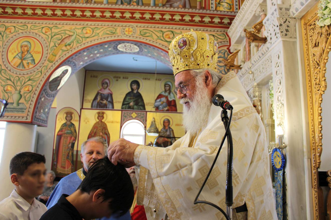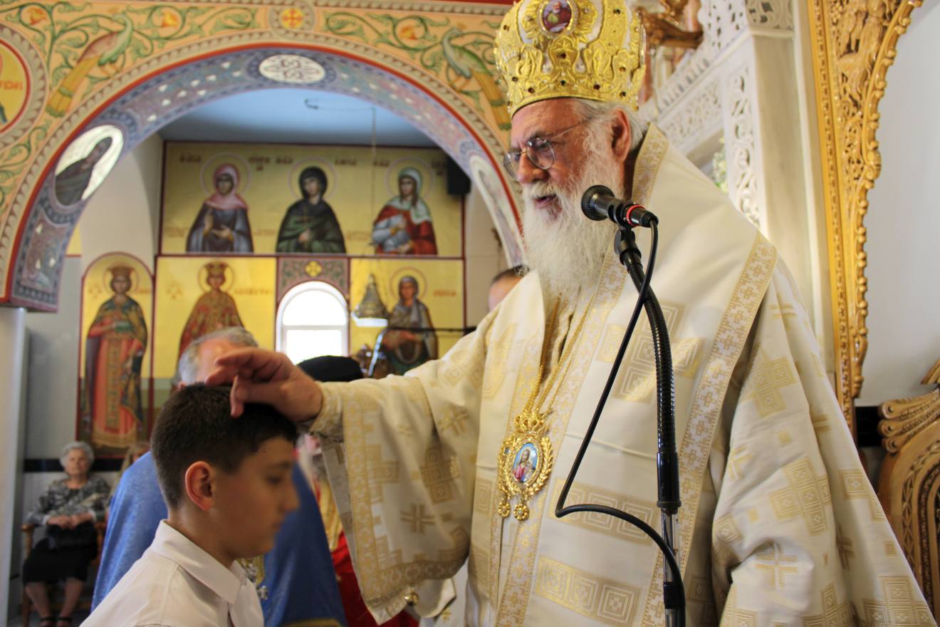 Πριν την απόλυση ο Σεβασμιώτατος προέβη στην χειροθεσία δύο γυμνασιοπαίδων που διακονούν από καιρό στο Ιερό Βήμα.