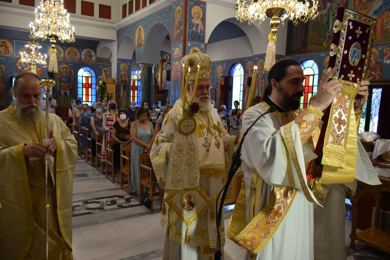 Στον πανηγυρίζοντα Ιερό Ναό Αγίου Παντελεήμονος Κρυονερίου ιερούργησε την Τετάρτη 27 Ιουλίου 2022 ο Σεβασμιώτατος Μητροπολίτης Ιλίου κ. Αθηναγόρας, πλαισιωμένος από πολλούς ιερείς και διακόνους.