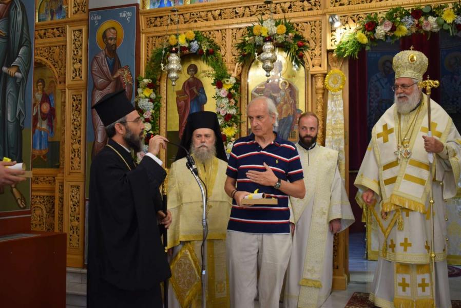 Στο τέλος της ακολουθίας βραβεύτηκαν από το Εκκλησιαστικό Συμβούλιο και τον πρόεδρό του Πρωτ. Πέτρο Θεοδοσίου δύο δωρητές του Ιερού Ναού.