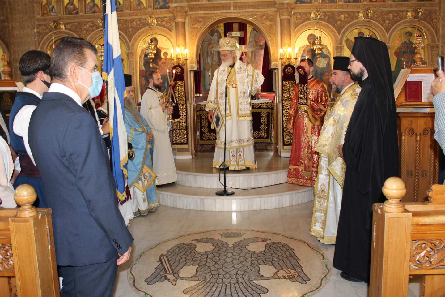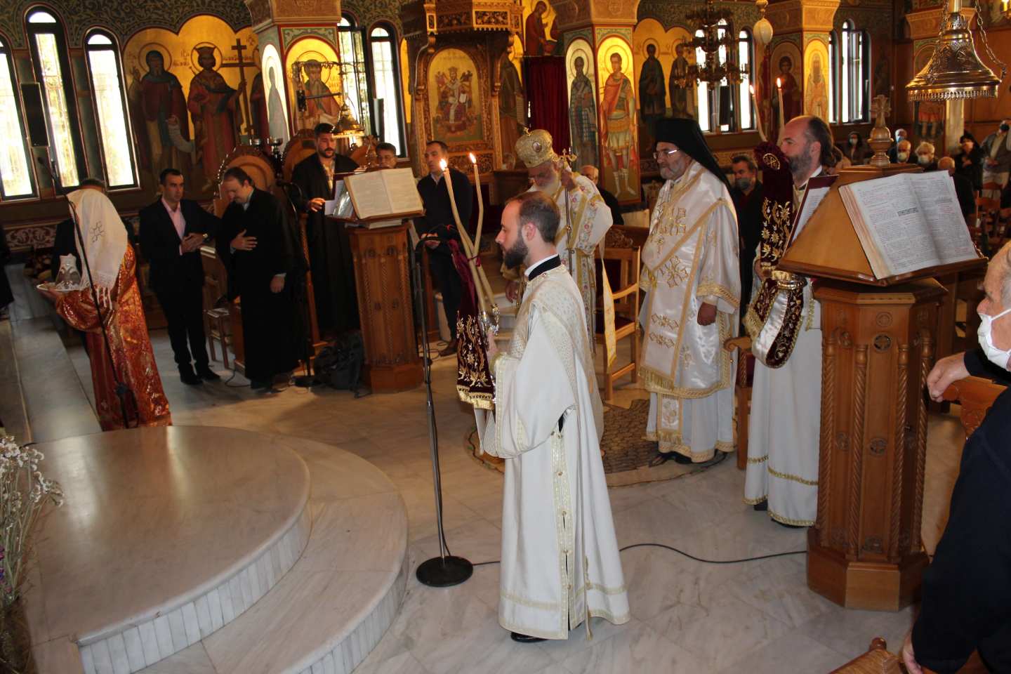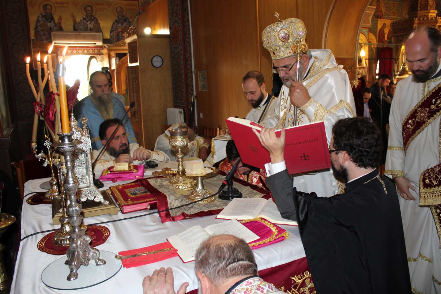 Το πρωί της Κυριακής, πραγματοποιήθηκε δισαρχιερατική Θεία Λειτουργία, στον Ιερό Ναό Αγίου Διονυσίου Ιλίου, προεξάρχοντος του Σεβ. Μητροπολίτου Αρκαλοχωρίου, Καστελλίου, και Βιάννου κ. Ανδρέου και συνιερουργούντος του Σεβ. Μητροπολίτη Κρήνης κ. Κύριλλου, Πατριαρχικού Εξάρχου Μελίτης. Κατά την Θεία Λειτουργία, ο Σεβ. Μητροπολίτης Κρήνης, κ. Κύριλλος, με την άδεια και ευλογία του Παναγιωτάτου Οικουμενικού Πατριάρχου, κ.κ. Βαρθολομαίου, προέβη στην εις Διάκονον χειροτονία του Νικολάου Gongadze εκ Γεωργίας, προκειμένου, αυτός, να διακονήσει τη νεοσυσταθείσα Πατριαρχική Εξαρχία Μελίτης (Μάλτας). Μετά το πέρας της Θείας Λειτουργίας, ο Σεβ. Μητροπολίτης Αρκαλοχωρίου, Καστελλίου, και Βιάννου, κ. Ανδρέας, τέλεσε επιμνημόσυνη δέηση για τους πεσόντες Κρήτες της Επανάστασης.