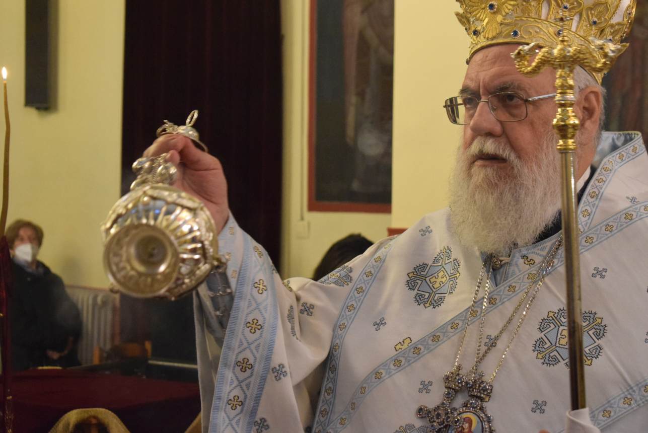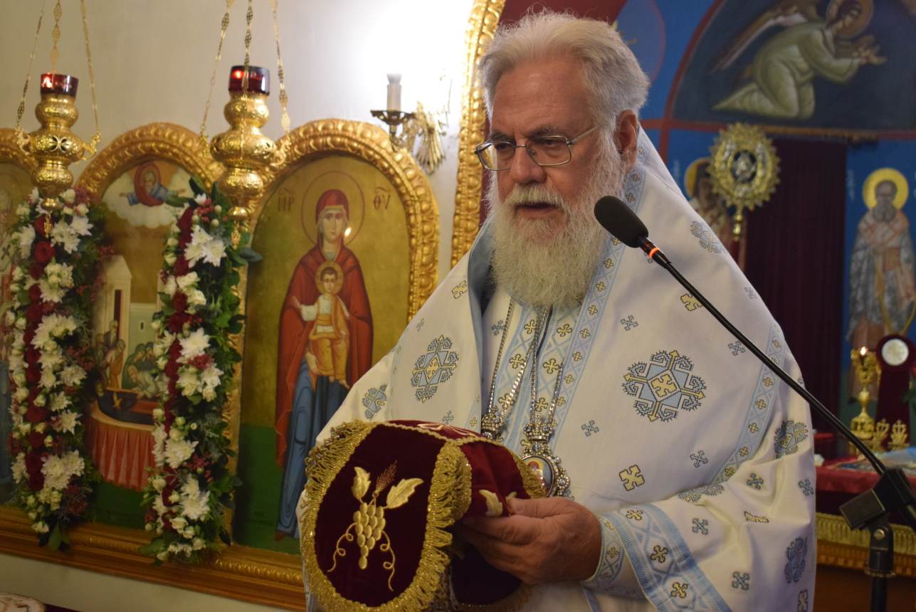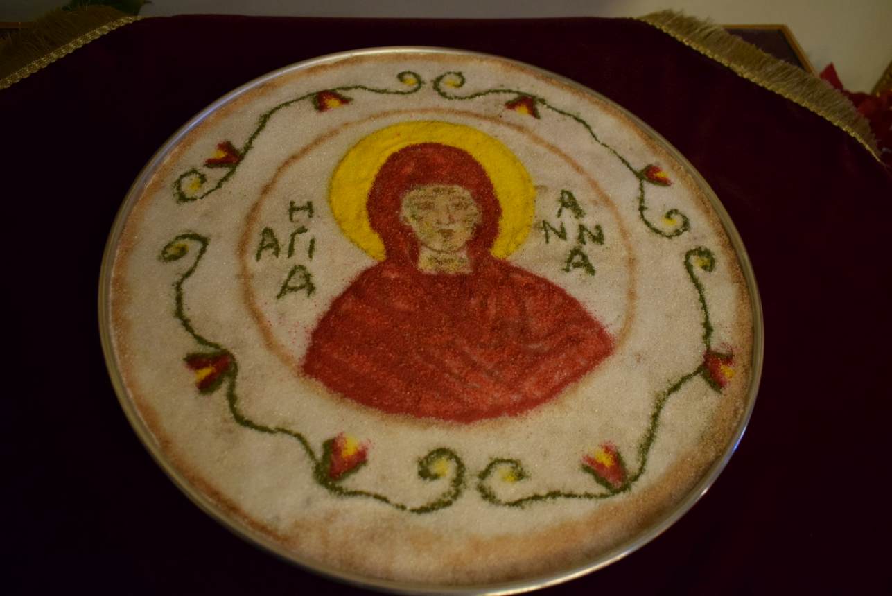 Μετά την ανάγνωση του ευαγγελικού αποσπάσματος, ο Σεβασμιώτατος έλαβε αφορμή από τον στίχο «οὐδεὶς λύχνον ἅψας καλύπτει αὐτὸν σκεύει ἢ ὑποκάτω κλίνης τίθησιν,  ἀλλ᾿ ἐπὶ λυχνίας ἐπιτίθησιν, ἵνα οἱ εἰσπορευόμενοι βλέπωσι τὸ φῶς», αναφέρθηκε στις δύο «λυχνίες», την Αγία Άννα και την θυγατέρα της την Παναγία, οι οποίες φωτίζουν την πορεία μας «ἐν τῷ αὐχμηρῷ τόπῳ» (τον ξηρό και ρυπαρό τόπο) της καθημερινότητάς μας, και δείχνουν την αληθινή οδό, τον Χριστό, στην πνευματική προσπάθειά μας να βαδίσουμε προς την Βασιλεία των Ουρανών.
