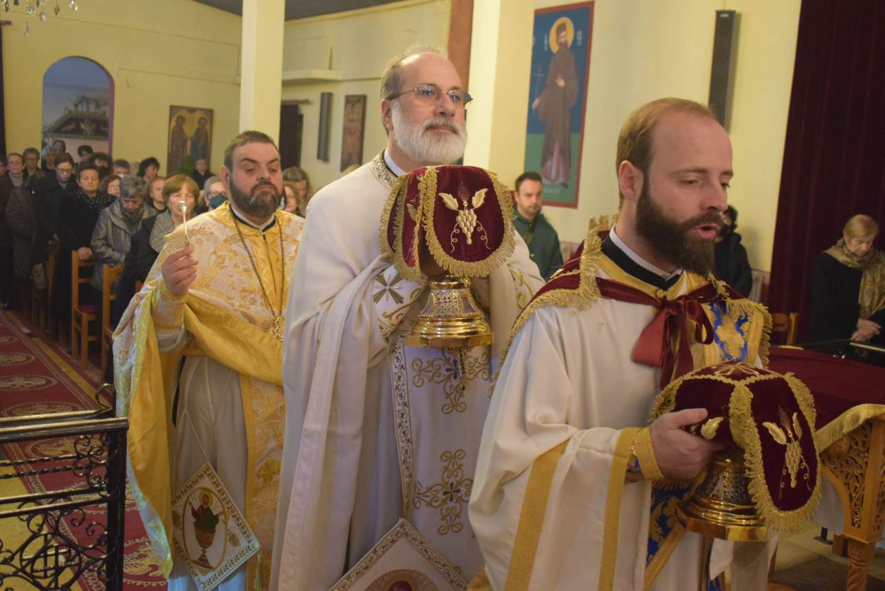 Συλλειτούργησαν ο ιεροκήρυκας Αρχιμ. Ιωαννίκιος Γιαννόπουλος, ο Γενικός Αρχιερατικός Επίτροπος Αρχιμ. Ιωάννης Ράπτης, ο εφημέριος της ενορίας Αρχιμ. Στυλιανός Τζινευράκης και ο ιεροδιάκονος Κωνσταντίνος Μανώλης.