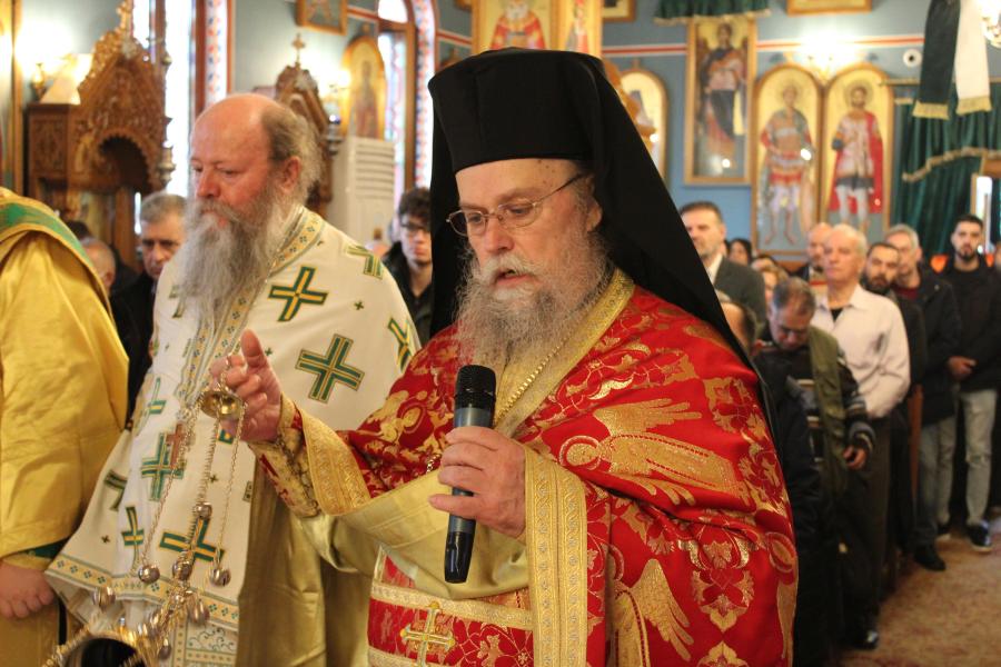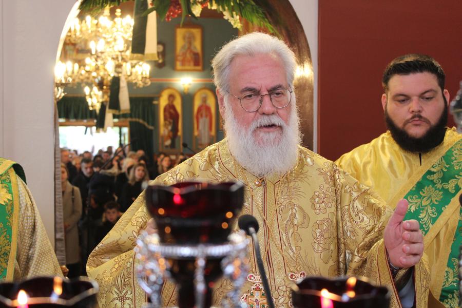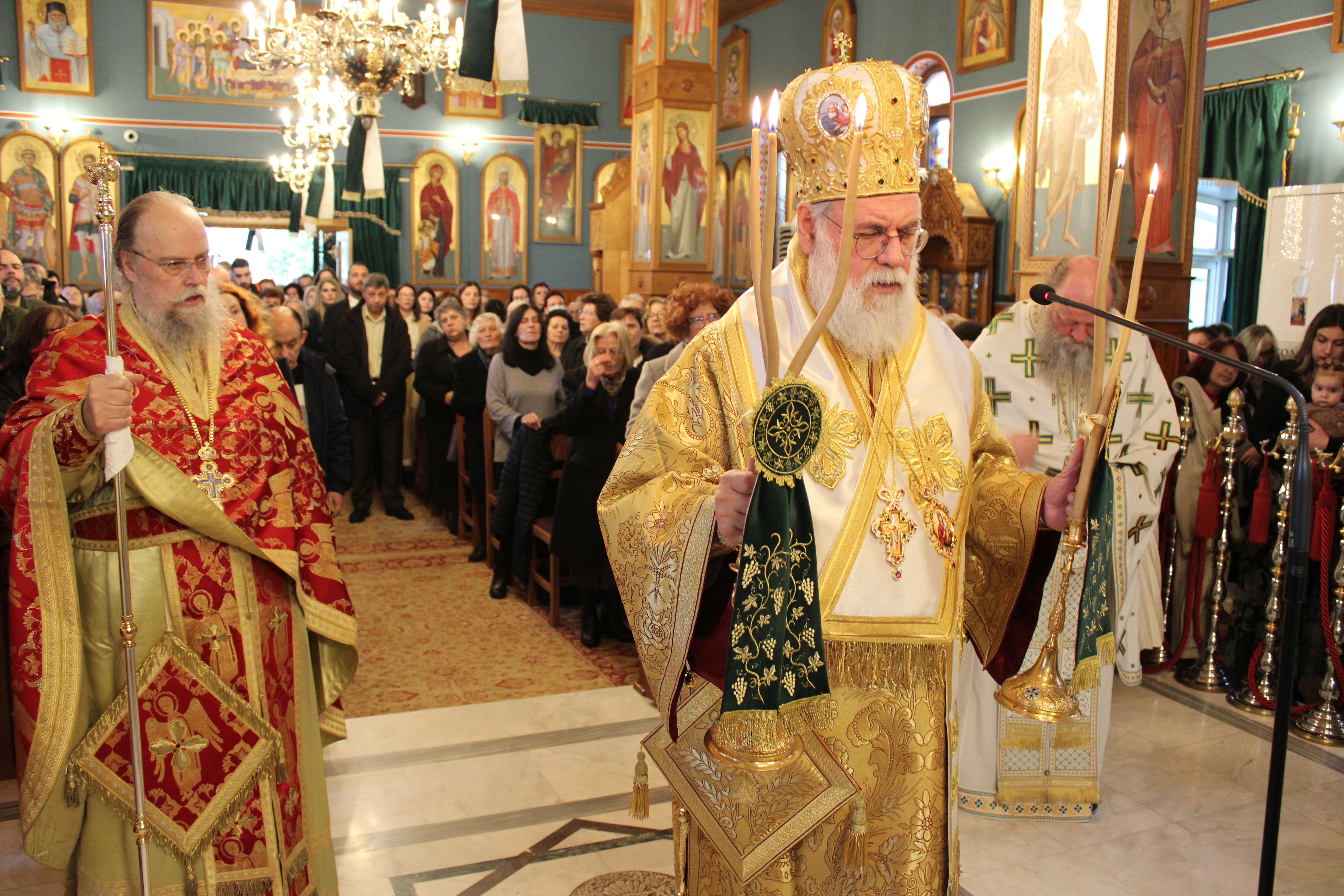 Μετά την ανάγνωση του αποσπάσματος από το Ευαγγέλιο του Αποστόλου Λουκά, όπου καταγράφεται η Παραβολή του Τελώνου και του Φαρισαίου, ο Σεβασμιώτατος μίλησε για το ταπεινό φρόνημα του Τελώνη, που είχε ως αποτέλεσμα την συγγνώμη του Θεού και τη δικαίωση του, παραβάλλοντάς το με την ταπείνωση του Θεού Λόγου, ο οποίος έκλινε ουρανούς και κατέβη, γενόμενος άνθρωπος για τη σωτηρία μας, αλλά και την απλότητα και ταπεινότητα του εορτάζοντος αγίου Τρύφωνα.