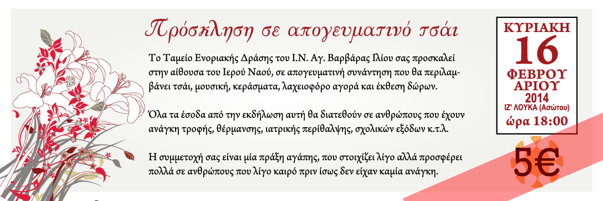 Φιλανθρωπική εκδήλωση - τσάι στην Αγ. Βαρβάρα Ιλίου