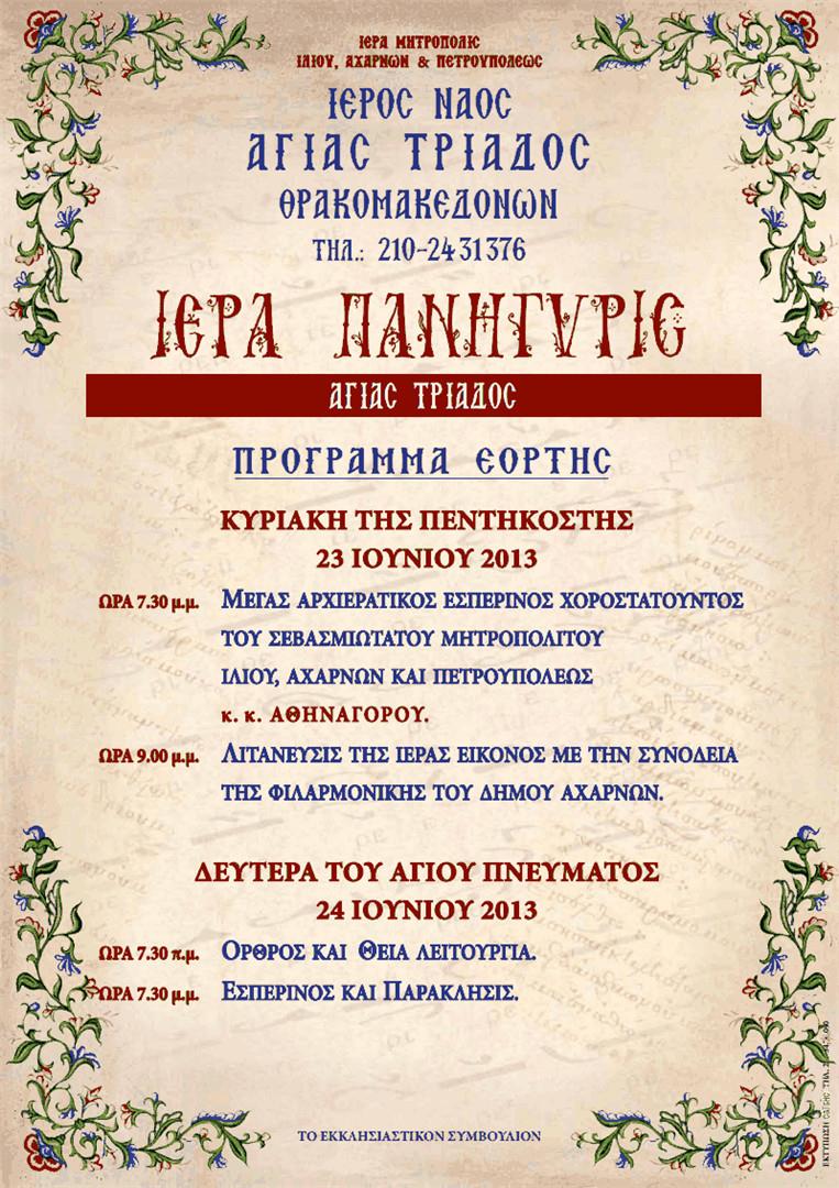 Πανήγυρις Ι.Ν. Αγίας Τριάδος Θρακομακεδόνων