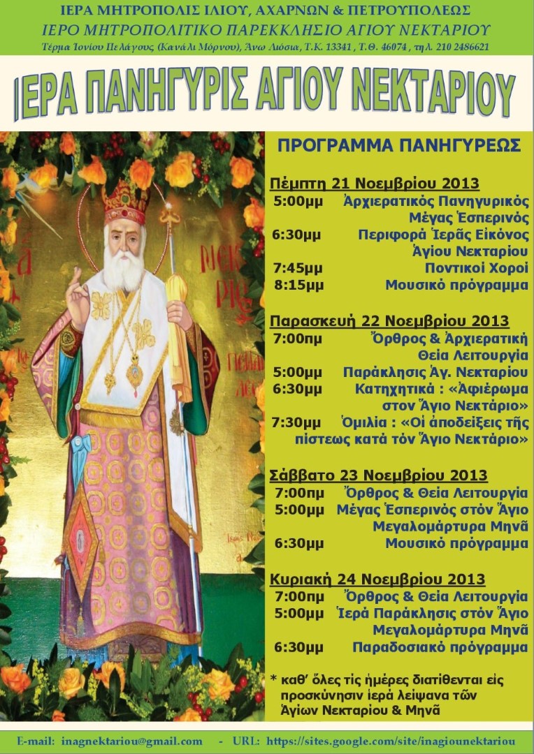Πανήγυρις Αγίου Νεκταρίου (Π.Η.) στα Άνω Λιόσια