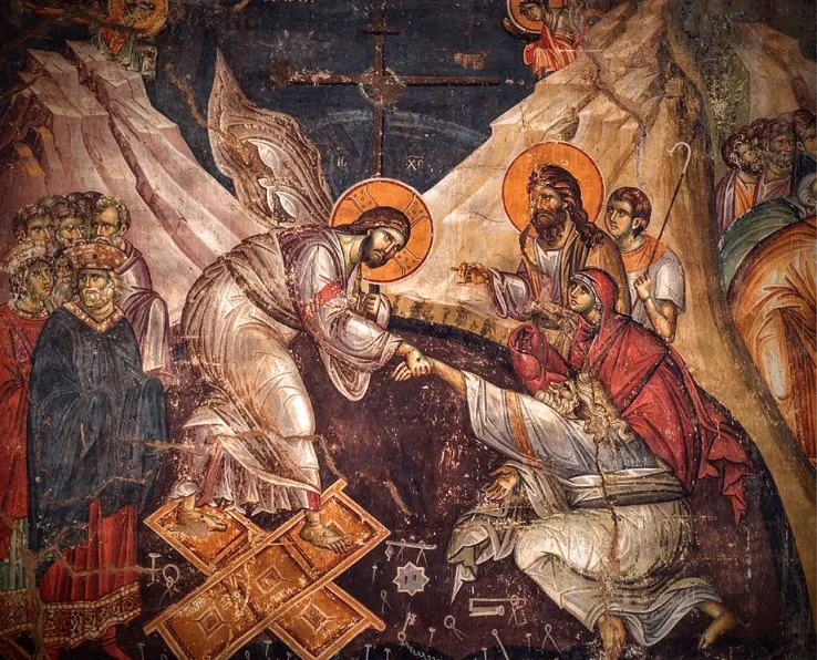 Στὸ ἱστορικό φρέαρ τοῦ Ἰακώβ μπροστά στὸ ὑλικό ὕδωρ συναντᾶ ὁ Λυτρωτής Κύριος τὴν ἁμαρτωλή Σαμαρείτιδα. Ἐκεῖ προσφέρει τὸ ἀληθινό ὕδωρ καὶ χειραγωγεῖ τὴν γυναίκα πρὸς τὴν ὑπέρβαση τῆς ἐφήμερης φθαρτότητος, τὸν φωτισμό καὶ τὴν ἀποκάλυψη τῆς θεανθρωπίνης Ἀληθείας.