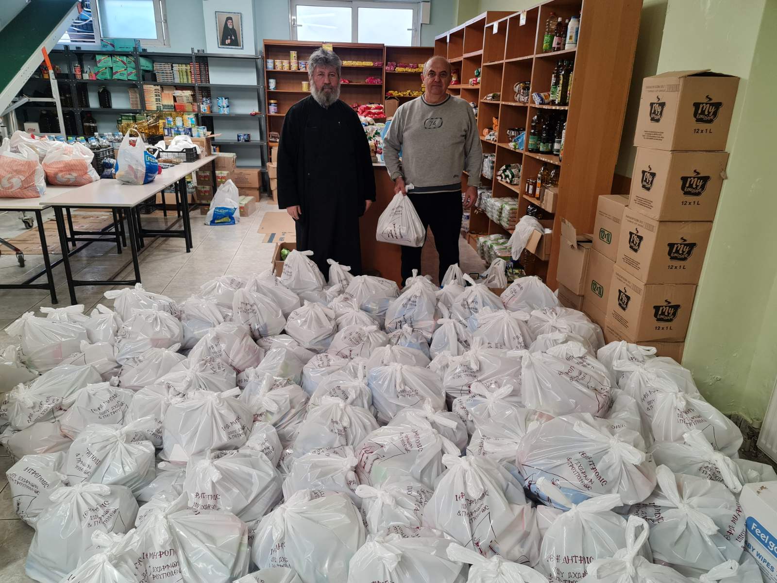 Με πρωτοπόρο τον Αιδ. Πρωτ. Κωνσταντίνο Δαρδαμάνη, την ψυχή του Κοινωνικού Παντοπωλείου, και με την πολύτιμη βοήθεια του συνεργάτη του και εθελοντή στο θεάρεστο αυτό έργο, κ. Γεωργίου Κατσαρή, ετοιμάζονται συνολικά τρεις χιλιάδες (3000) δέματα αγάπης με τρόφιμα και άλλα είδη πρώτης ανάγκης τα οποία θα διανεμηθούν στις Ενορίες της Μητροπόλεως σύμφωνα με τις κατά τόπους ανάγκες.