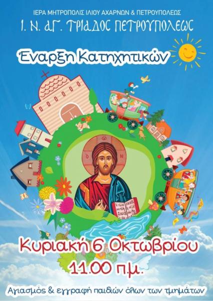 Έναρξη κατηχητικών συνάξεων ενορίας Αγίας Τριάδας Πετρουπόλεως, την Κυριακή 6 Οκτωβρίου 2024, στις 11 π.μ.