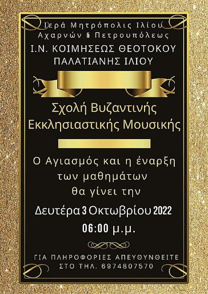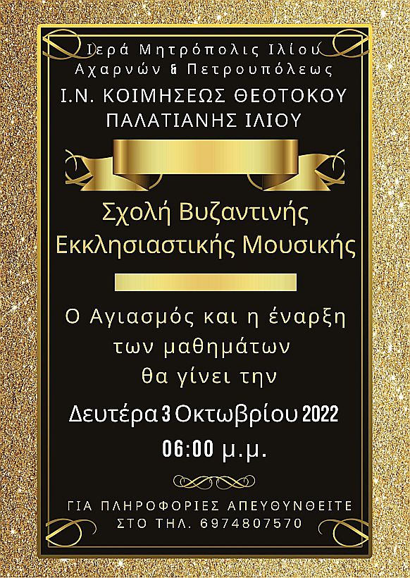 Ξεκινούν τα μαθήματα στη Σχολή Βυζαντινής Εκκλησιαστικής Μουσικής της Ιεράς Μητροπόλεως Ιλίου, Αχαρνών και Πετρουπόλεως για το έτος 2022-2023.