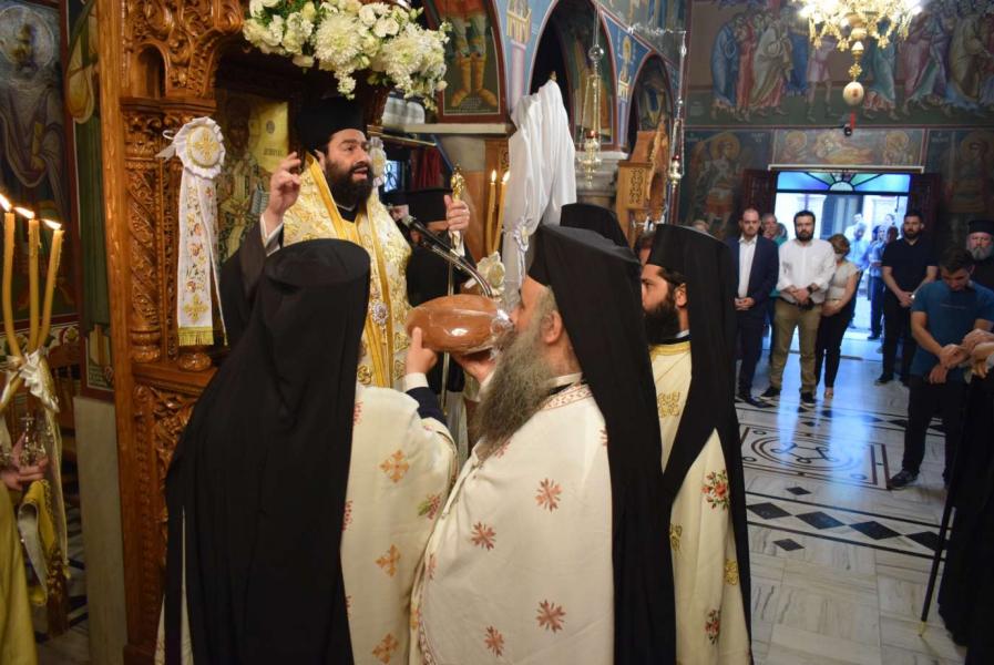 Ο Θεοφιλέστατος Επίσκοπος Ευρίπου κ. Χρυσόστομος λίγο προ της απολύσεως, αναφέρθηκε στο πρόσωπο και στα ιδιαίτερα χαρακτηριστικά γνωρίσματα του Αγίου Αθηναγόρου και τα συνέδεσε με την προσωπικότητα του εορτάζοντα Μητροπολίτη κ. Αθηναγόρου ενώ παράλληλα μετέφερε εκ μέρους όλων των Αρχιερέων τις ευχές και την αγάπη του στον Μητροπολίτη Ιλίου.