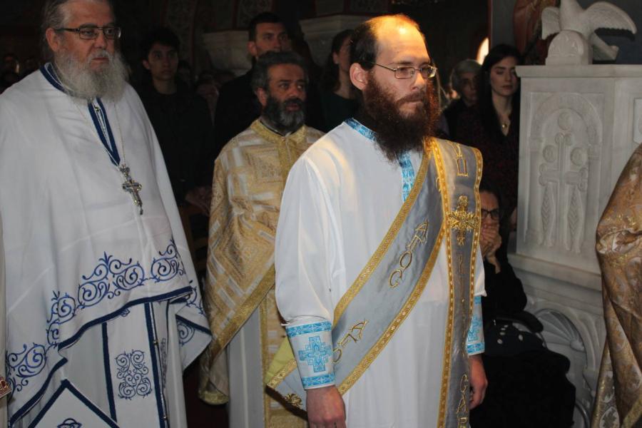 Μετά την Μεγάλη Είσοδο ο υπό χειροτονία διάκονος ομίλησε για την ελεύθερη επιλογή των υποψηφίων ιερέων και τον σταυρό που καλούνται να σηκώσουν, θεμελιώνοντας τις θέσεις του με αποσπάσματα από λόγους του Αγίου Γρηγορίου του Θεολόγου και του μακαριστού Ιδρυτού της Ιεράς Μονής Μητροπολίτη Αττικής και Μεγαρίδος κυρού Νικοδήμου.