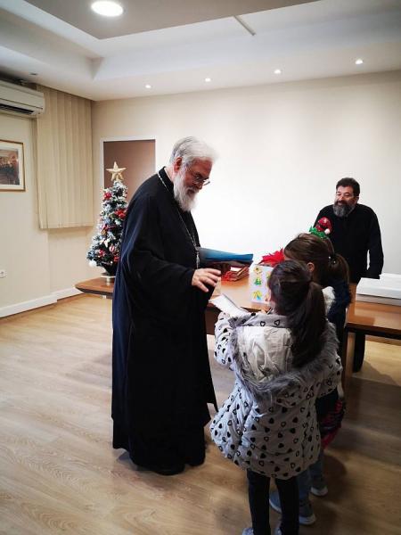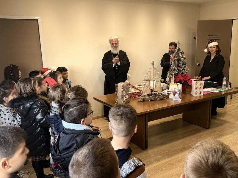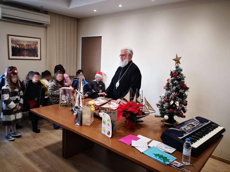 Η ζεστή ατμόσφαιρα και οι παιδικές φωνές γέμισαν με χαρά και αισιοδοξία το χώρο. Οι μαθητές συνομίλησαν με τον Σεβασμιώτατο Μητροπολίτη κ.Αθηναγόρα καθώς του πρόσφεραν κάρτες και δώρα.