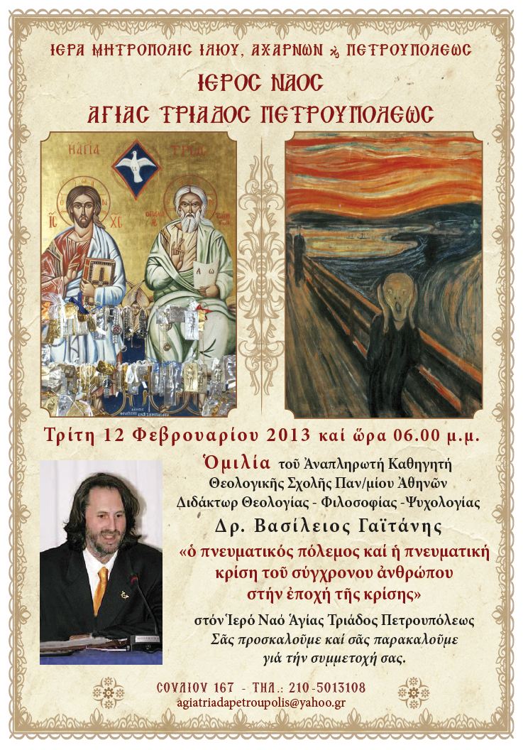 Ομιλία Δρ. Βασιλείου Γαϊτάνη «Ο πνευματικός πόλεμος στην εποχή της κρίσης»
