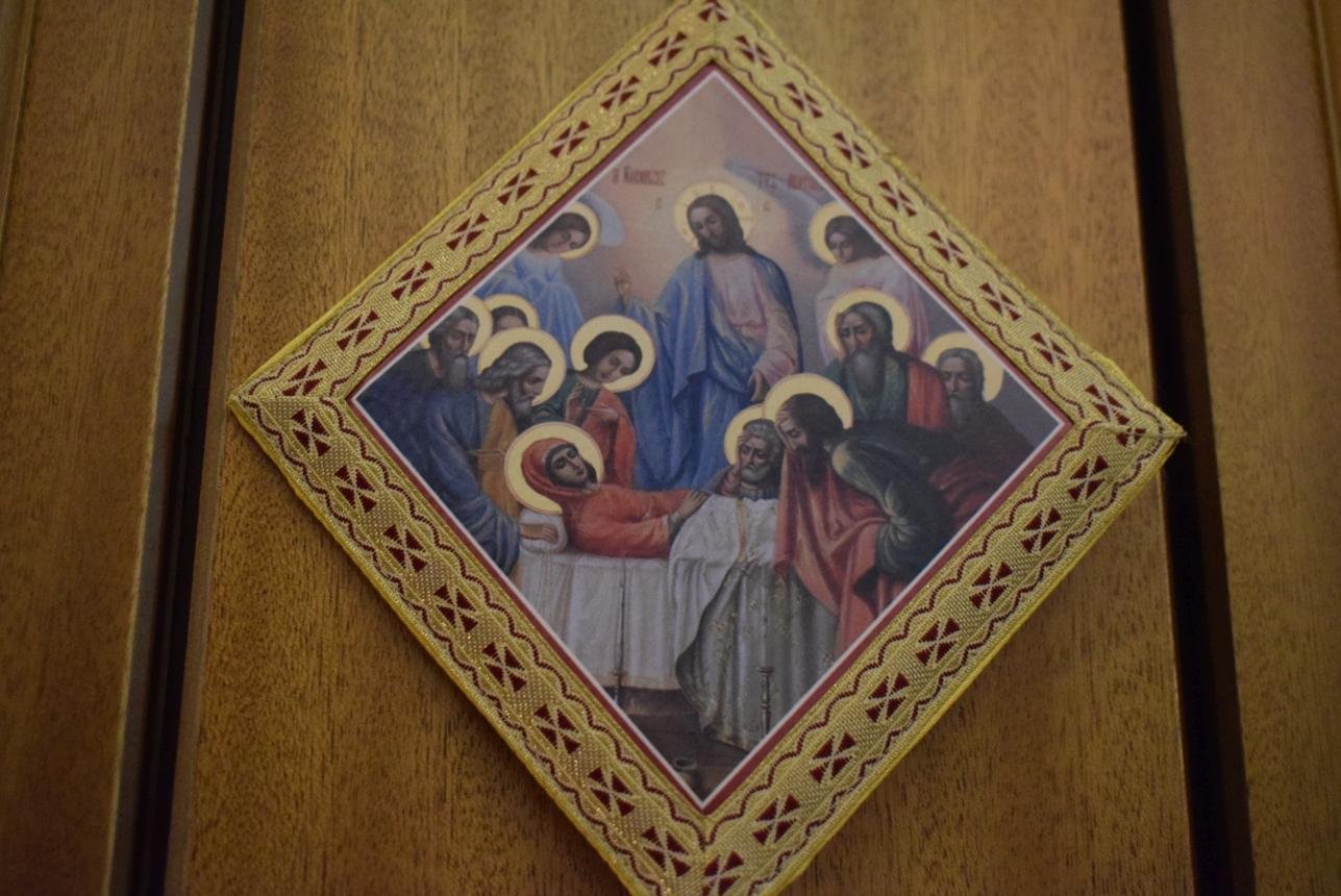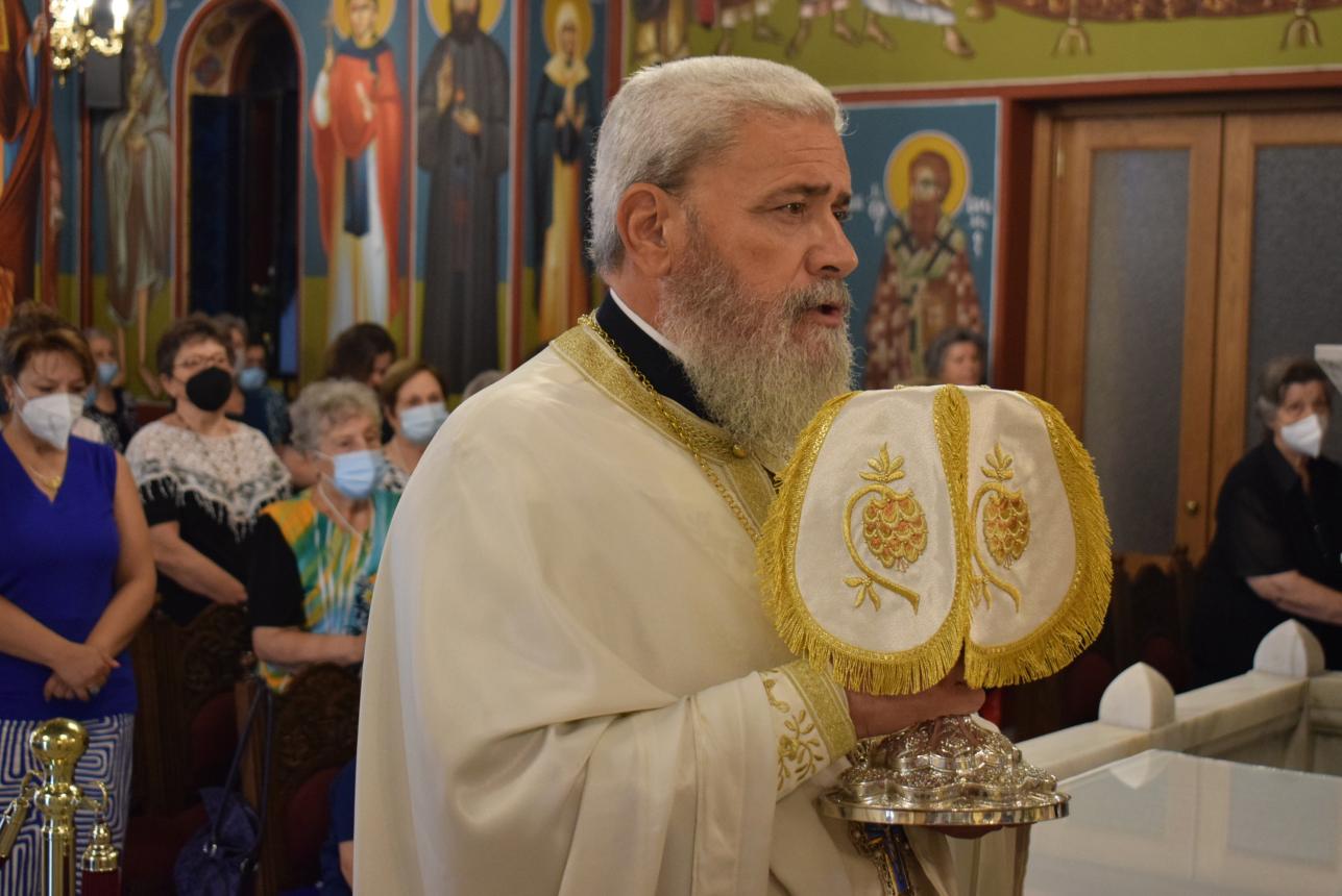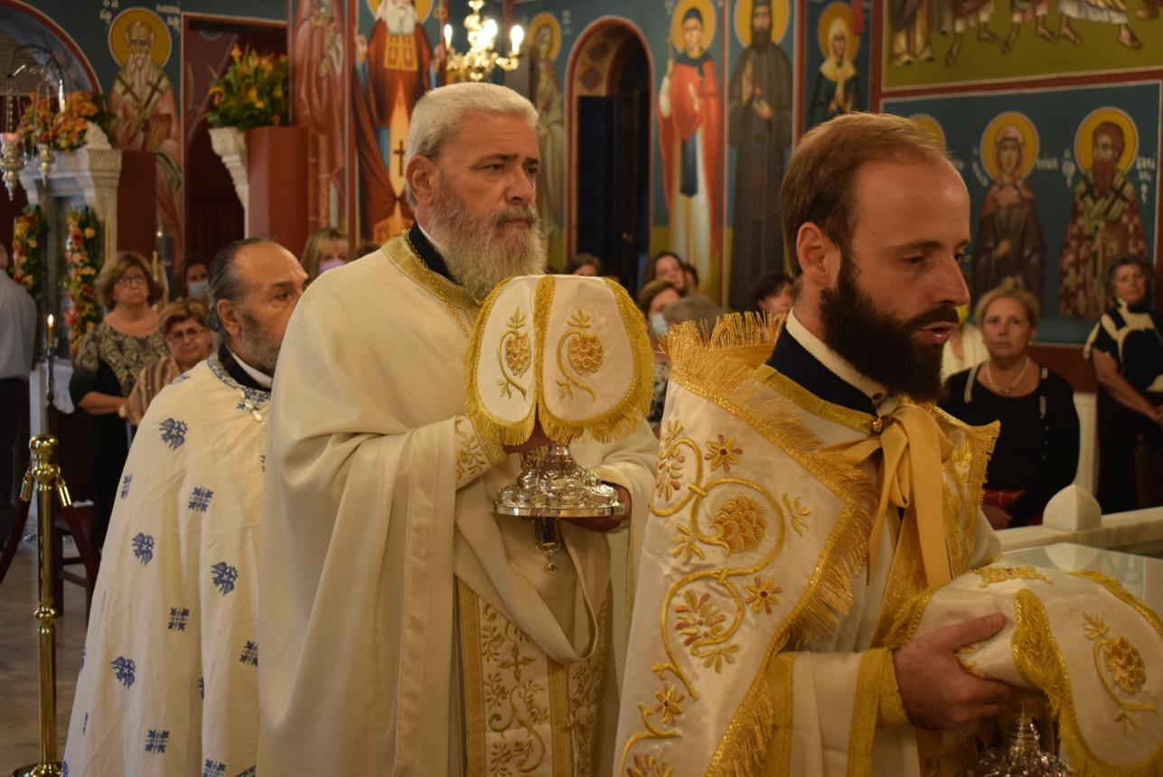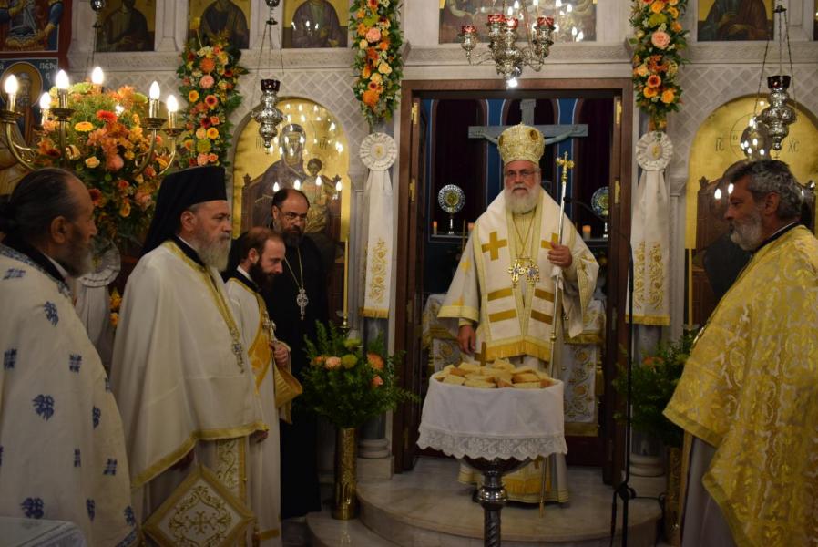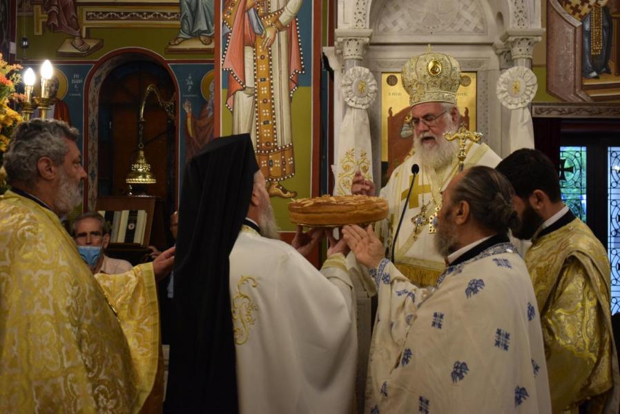 Στο τέλος της Θείας Λειτουργίας ο Σεβασμιώτατος αναφέρθηκε στο γεγονός της εορτής της Κοιμήσεως της Θεοτόκου, ερμηνεύοντας τον στίχο «τὴν ζωὴν ἡ κυήσασα, πρὸς ζωὴν μεταβέβηκας» από τροπάριο του Όρθρου. Η Παναγία κατέστη δοχείο ζωής, χώρα του Αχωρήτου, με τη σύλληψη και τη γέννηση του Θεανθρώπου Χριστού, ο οποίος είναι «η οδός, η αλήθεια και η ζωή». Εκείνος δίνει ζωή και ύπαρξη σε κάθε τι στο σύμπαν και με τη σάρκωσή του ζωοποιεί τον άνθρωπο, προσφέροντάς του τη δυνατότητα κατάκτησης της αθανασίας, την οποία έχασε στον Παράδεισο.