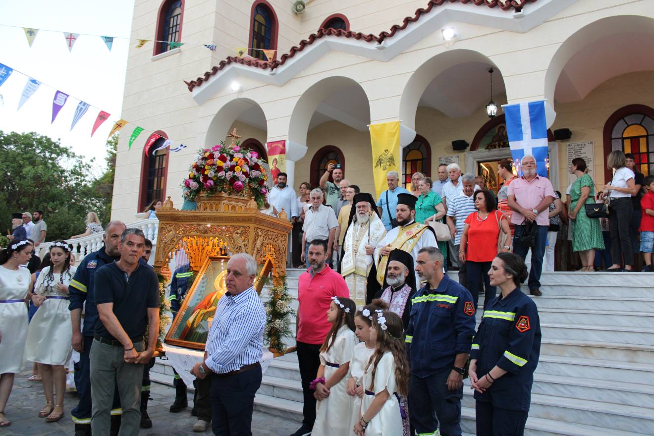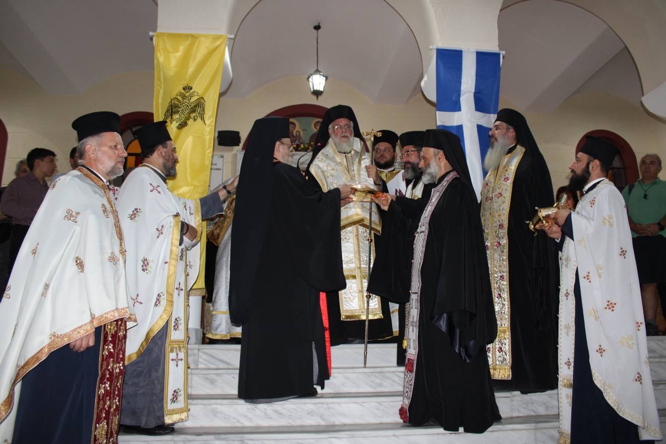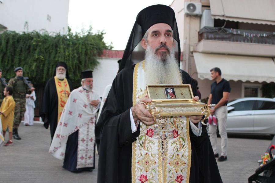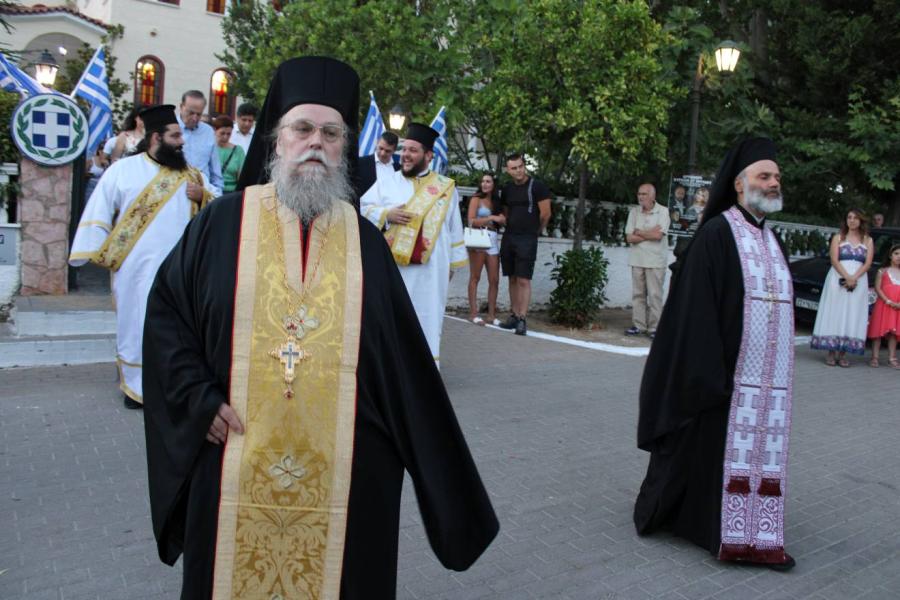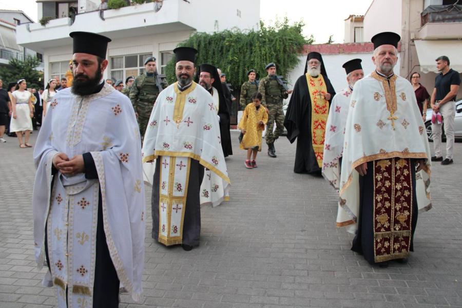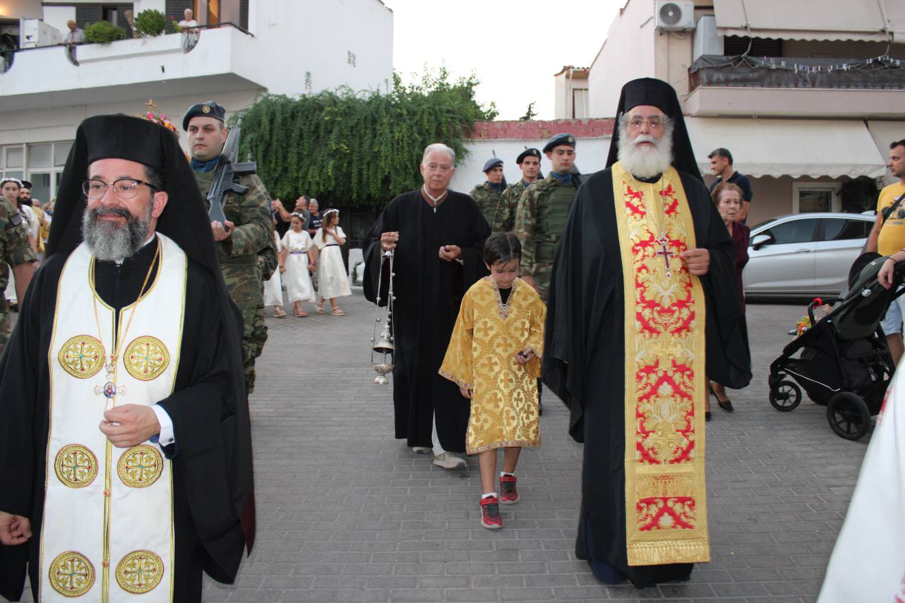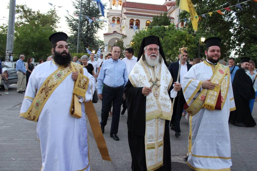 Στον Εσπερινό και την λιτάνευση συμμετείχαν οι Αρχιμανδρίτες Ιωάννης Ράπτης - Γενικός Αρχιερατικός Επίτροπος της Ιεράς Μητροπόλεως, Αγαθάγγελος Κόκλας - Ιεροκήρυκας, Χρυσόστομος Καλαθάς - Πρόεδρος του Εκκλ. Συμβουλίου του του Ι. Ν. Αγ. Διονυσίου Αχαρνών, Τιμόθεος Αναγνωστάκης - Πρόεδρος του Εκκλ. Συμβουλίου του του Ι. Ν. Κοιμήσεως Θεοτόκου Αφιδνών και οι Πρωτοπρεσβύτεροι και Πρεσβύτεροι Πέτρος Θεοδοσίου - Πρόεδρος του Εκκλ. Συμβουλίου του Ιερού Ναού, ο οποίος διηκόνησε και ως τελετάρχης, Λάμπρος Καρίνος - Πρόεδρος του Εκκλ. Συμβουλίου του του Ι. Ν. Αγ.Τριάδος Θρακομακεδόνων, Κωνσταντίνος Λαμπρόπουλος - Πρόεδρος του Εκκλ. Συμβουλίου του του Ι. Ν. Αγ. Μυροφόρων Γυναικών και Νικοδήμου Ανάκασας, κληρικοί από όμορες μητροπόλεις και οι διάκονοι του Σεβασμιωτάτου π. Άγγελος Μιχαλόπουλος και π. Καλλίνικος Ζωγράφος.