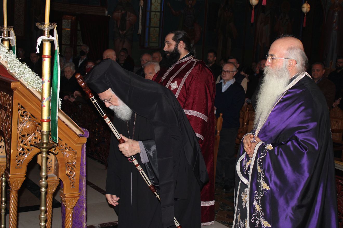 Στο τέλος της ακολουθίας ευχήθηκε στους παρόντες πιστούς συμμετοχή στη πορεία προς το Πάθος του Χριστού κατά τη Μεγάλη Εβδομάδα βιώνοντας το όχι συναισθηματικά αλλά οντολογικά.
