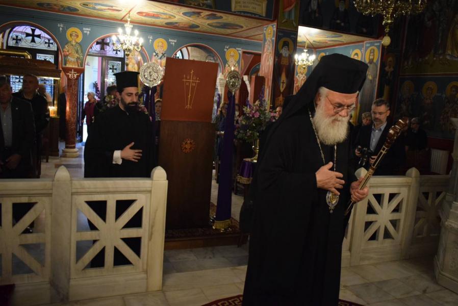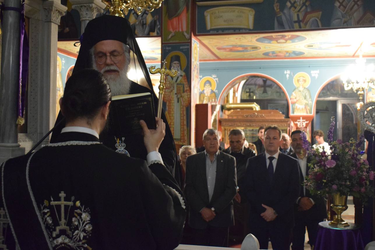 Μέτα τα τροπάρια των Αποστίχων ο Σεβασμιώτατος με αφορμή το γεγονός της αλείψεως με μύρο του Χριστουύ από την αμαρτωλό γυναίκα, υπογράμμισε τον πόνο της «απεγνωσμένης δια τον βίον» και «επεγνωσμένης δια τον τρόπον» γυναικός, ο οποίος συνάντησε τον πόνο του Ιησού για την προδοσία, την άρνηση, την εγκατάλειψη και τον εξευτελισμό, που θα υποστεί από φίλους και εχθρούς. Η συνάντηση της αδύναμης γυναίκας με τον δυνατό Θεάνθρωπο σηματοδοτεί τη λύτρωση του ανθρωπίνου γένους από τη φθορά, την αρρώστια και τον θάνατο.