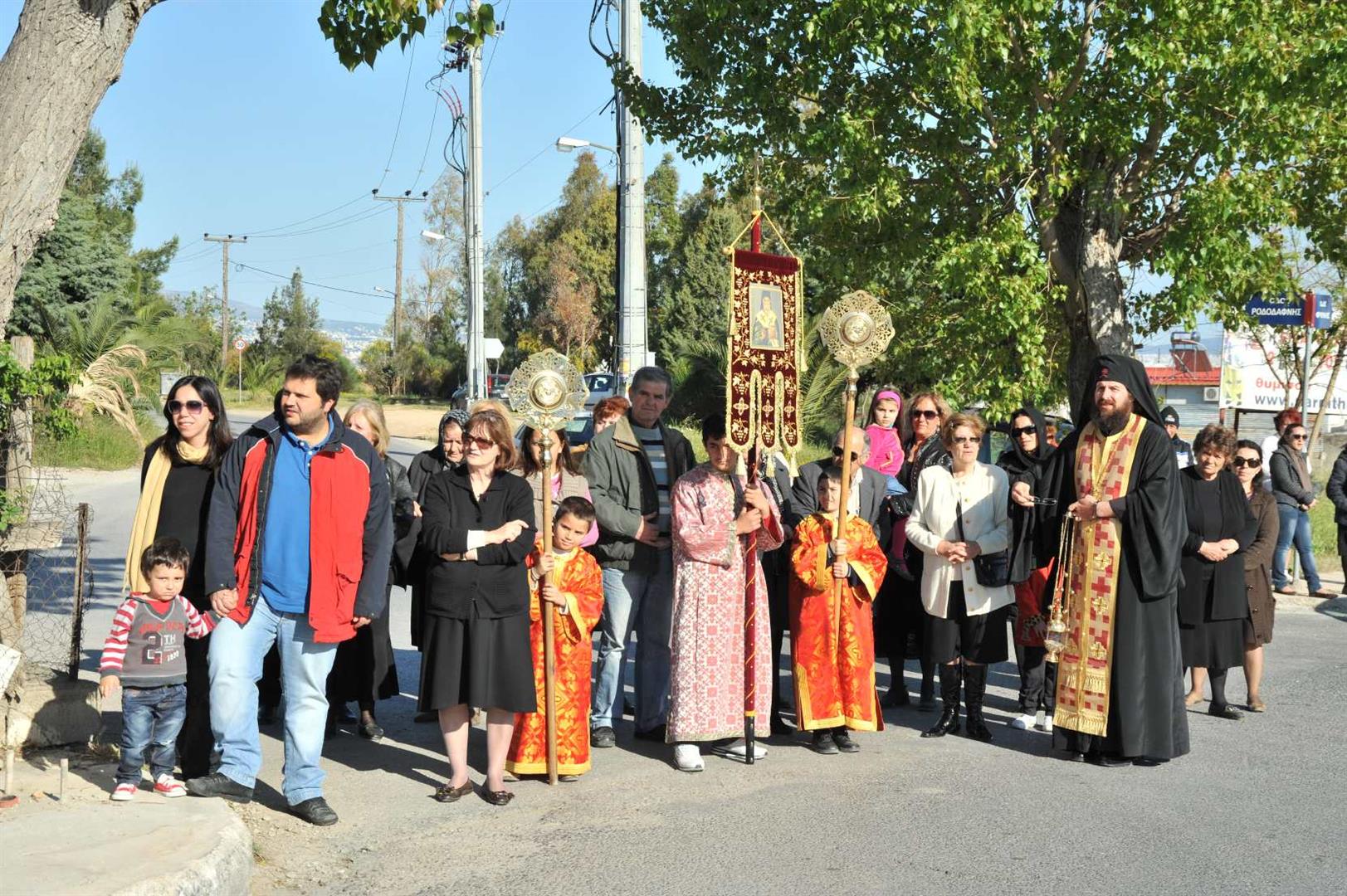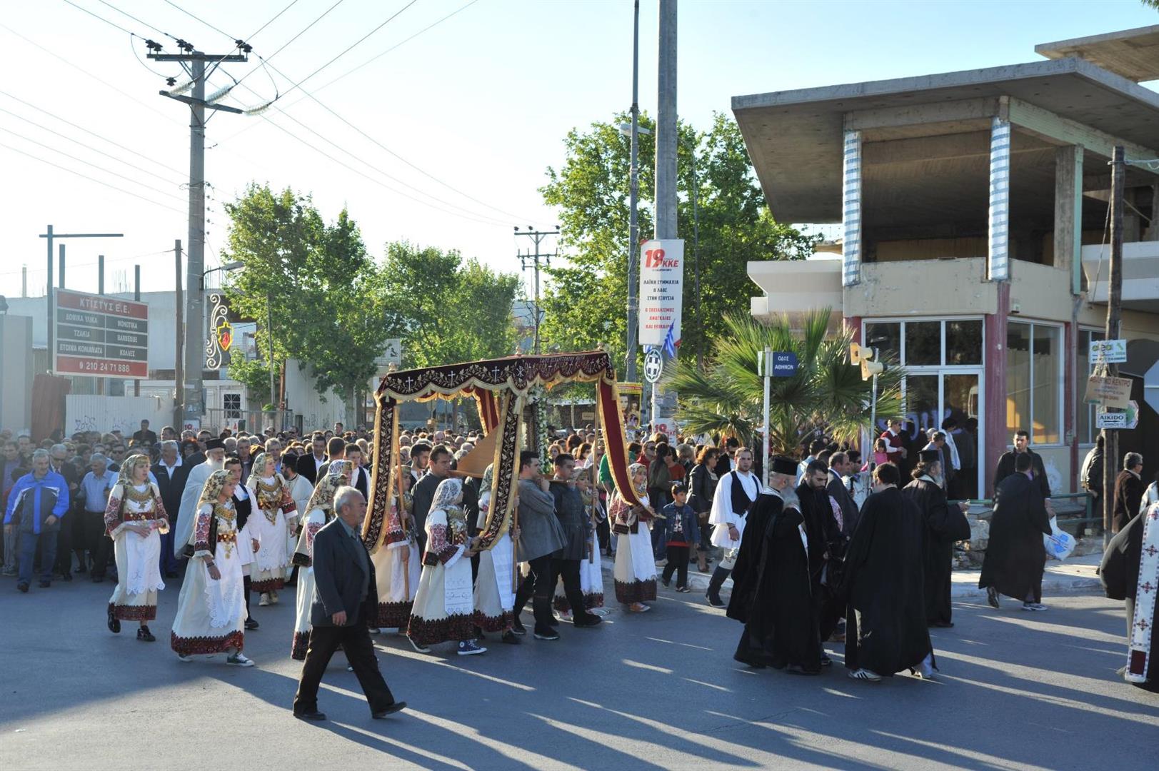Στη Φυλή, όπως κάθε χρόνο, ανέμενε πλήθος κόσμου, κάποιοι από τους οποίους, μαζί με τον εφημέριό τους π. Δημήτριο, ακολούθησαν τη λιτανεία ως τα Άνω Λιόσια. Ανάλογη ήταν και η υποδοχή στις ενορίες του Αγίου Ιωάννου και του Αγίου Δημητρίου καθώς και των παρεκκλησίων του Αγίου Νεκταρίου και του Αγίου Λουκά του Ιατρού.