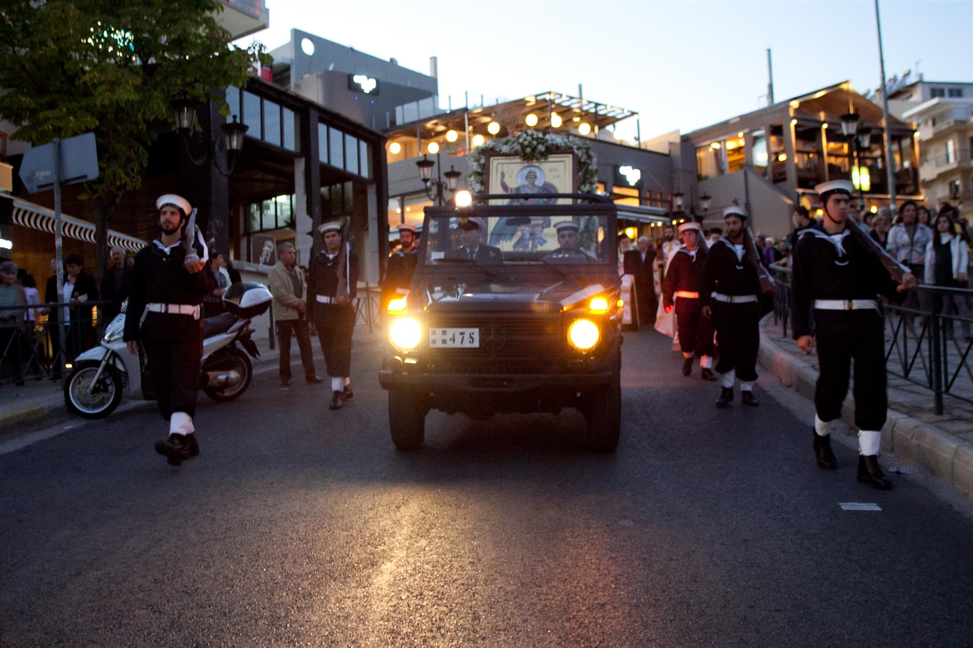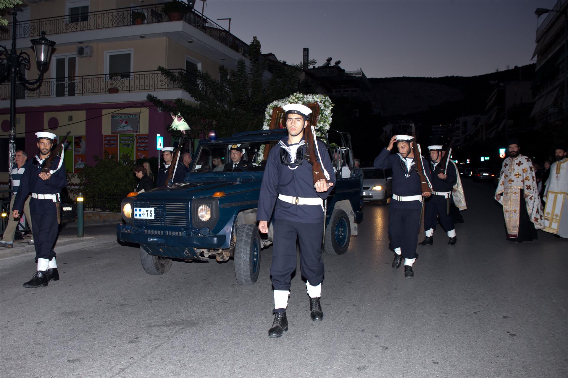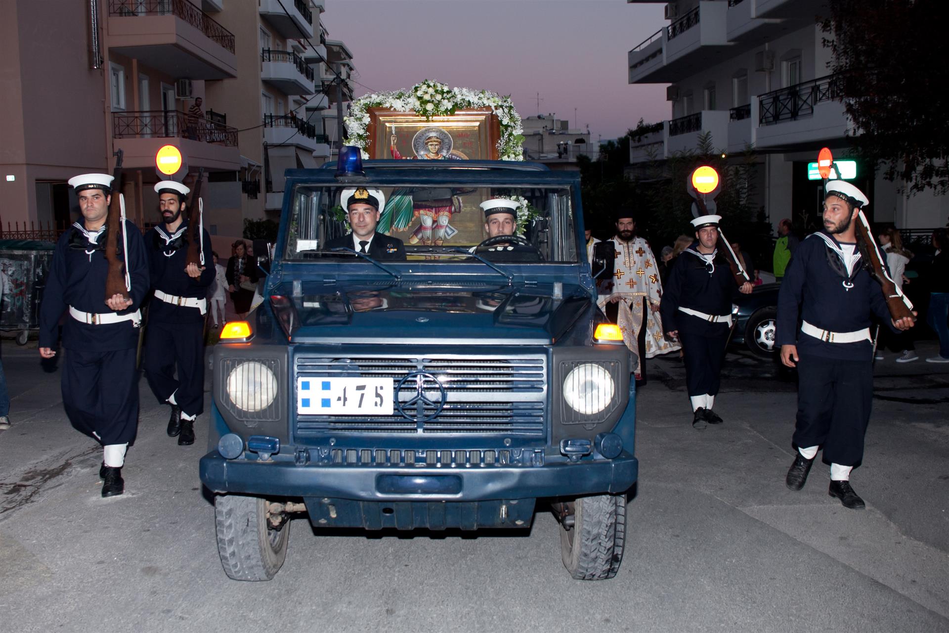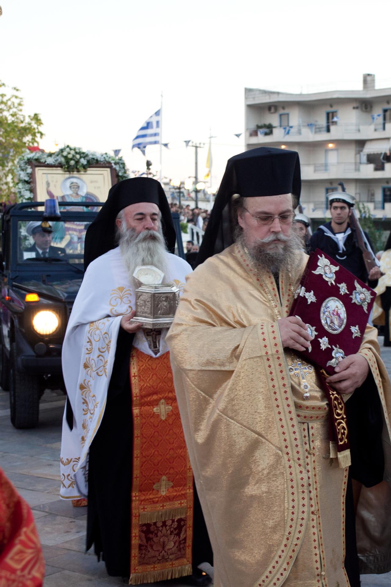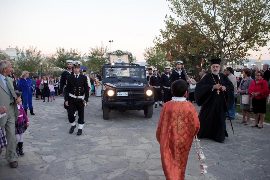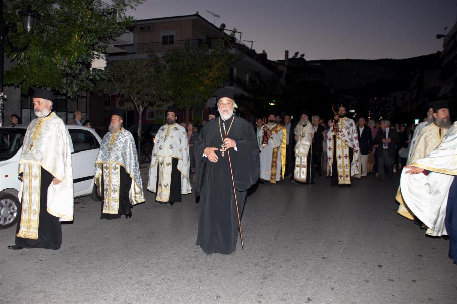 Προεξάρχων της λιτανείας ήταν ο Σεβασμιώτατος Μητροπολίτης Ιλίου κ. Αθηναγόρας με συμμετέχουσες τις δημοτικές αρχές της πόλης. Τη λιτανεία της εικόνας του Αγίου συνόδευσε η μπάντα του Πολεμικού Ναυτικού με στρατιωτικό άγημα και όχημα, το οποίο μετέφερε την εικόνα. Πλήθος λαού συμμετείχε μαζί με το ιερατείο των γύρω περιοχών.