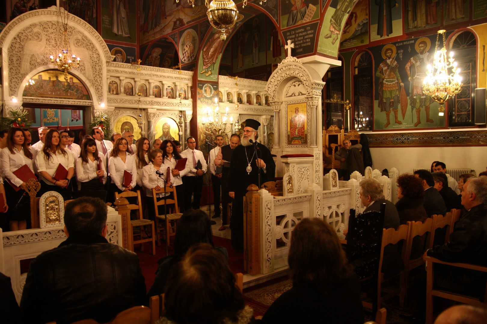 Μεγάλη επιτυχία σημείωσε η Χριστουγεννιάτικη Συναυλία της Βυζαντινής Χορωδίας του Δημοτικού Ωδείου Αχαρνών, την Κυριακή 15 Δεκεμβρίου 2013, που πραγματοποιήθηκε στον κατάμεστο από κόσμο Ιερό Ναό του Αγίου Διονυσίου Αχαρνών.