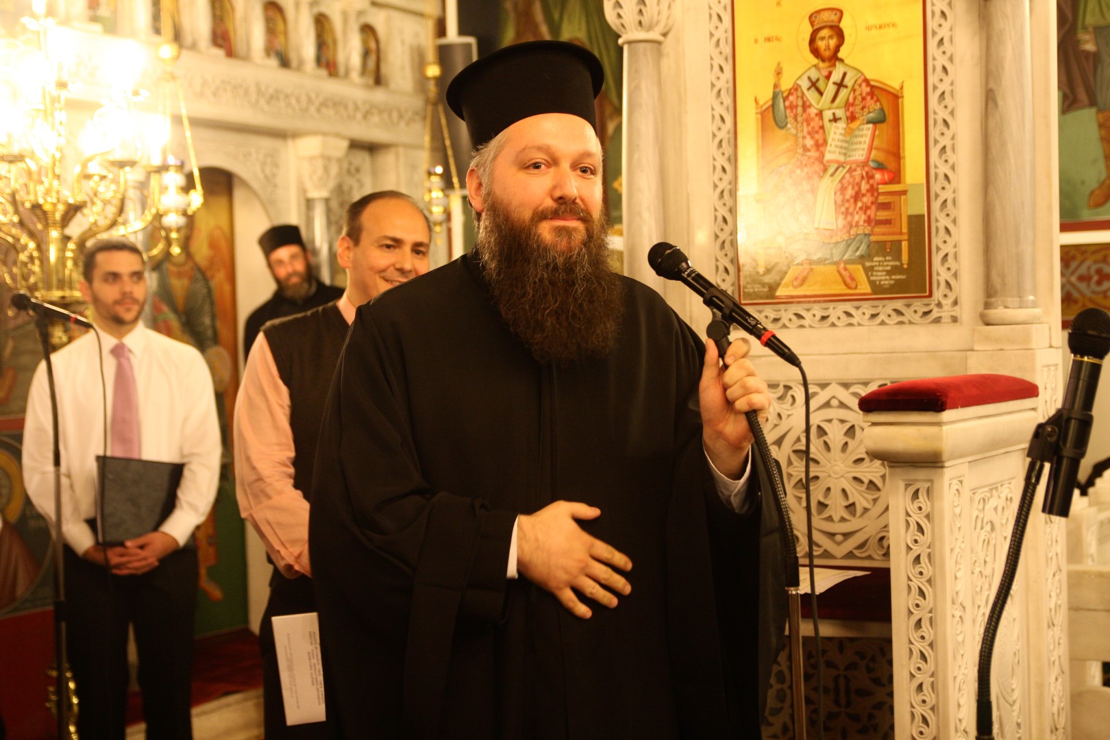Ο Σεβασμιώτατος Μητροπολίτης Ιλίου, Αχαρνών και Πετρουπόλεως κ. Αθηναγόρας συνεχάρη τη χορωδία για την άριστη απόδοση των ύμνων, για την επιμελημένη εμφάνιση και εν κατακλείδι απηύθυνε χαιρετισμό και έδωσε τις πατρικές ευλογίες στα μέλη της Χορωδίας και στο ακροατήριο.
