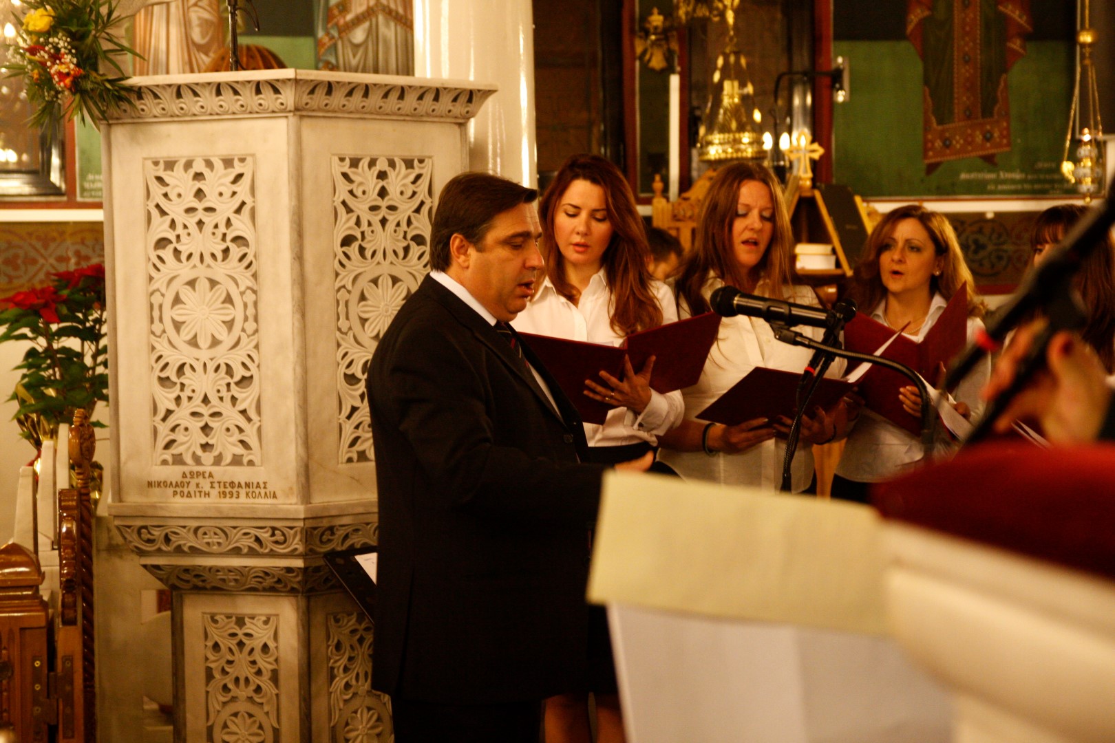 Τη χορωδία διηύθυνε ο πρωτοψάλτης και καθηγητής Δημήτριος Καλομοίρης σ’ ένα πρόγραμμα το οποίο περιελάμβανε ένα απάνθισμα επίκαιρων εκκλησιαστικών ύμνων, αλλά και κάλαντα από διάφορες περιοχές της πατρίδας μας, αναδεικνύοντας τον πλούτο της εκκλησιαστικής μουσικής μας παράδοσης.