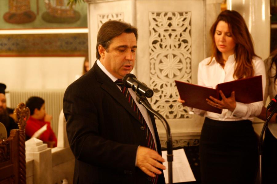 Ο Δήμαρχος Αχαρνών κ. Σωτήριος Ντούρος απηύθυνε τις ευχές του στους παρισταμένους και μίλησε με θερμά λόγια για τη Βυζαντινή Χορωδία του Δημοτικού Ωδείου Αχαρνών.
