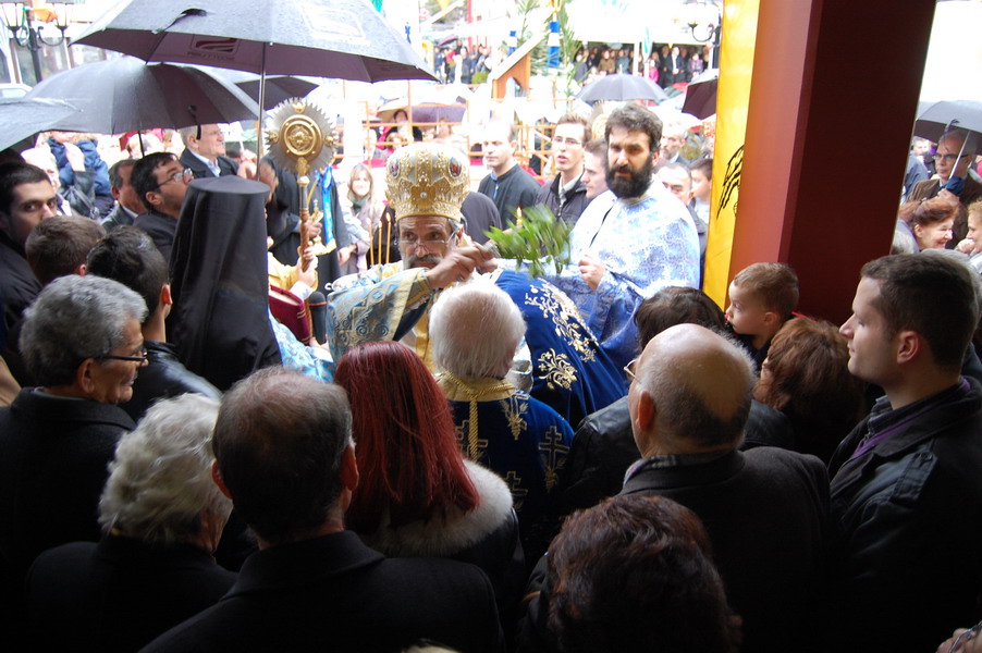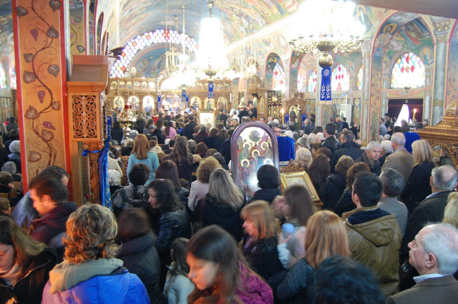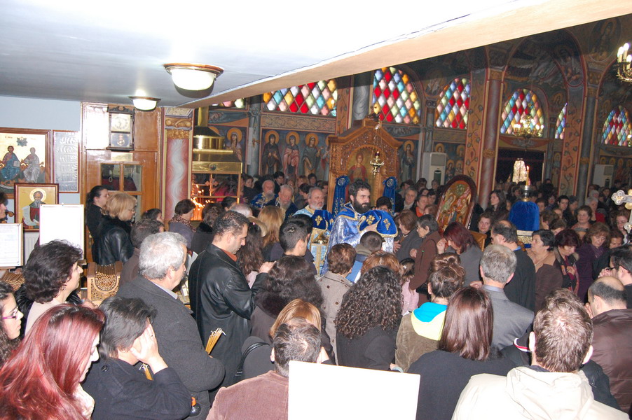 Οι ενορίτες κατέκλυσαν τον ναό για να συμμετάσχουν στις ακολουθίες και να παραλάβουν τον Μεγάλο Αγιασμό.